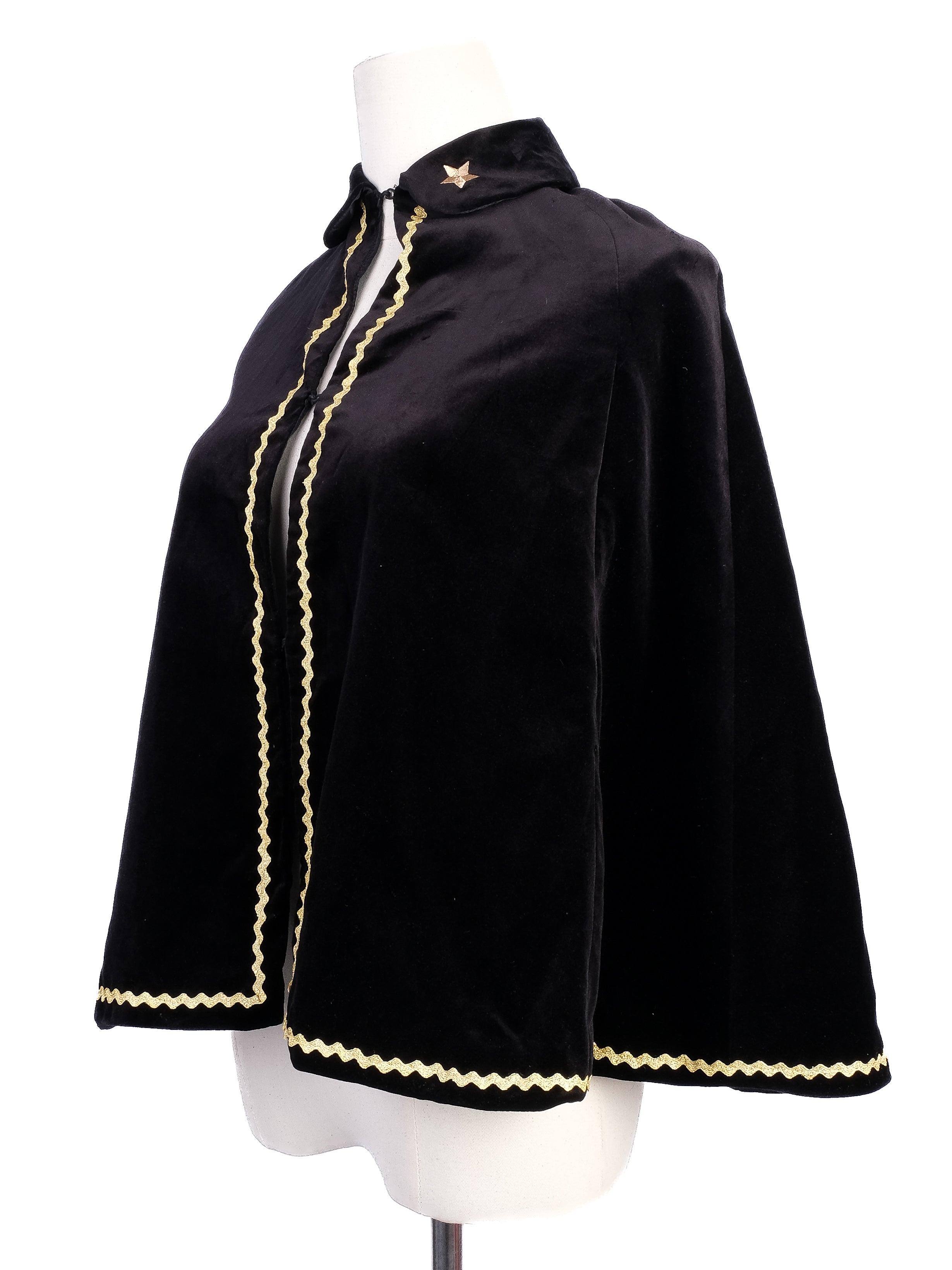 Gucci Kids Black Velvet Cape with Gold Detailing Size 6 This exquisite black velvet cape from Gucci is designed for children and boasts beautiful gold detailing that enhances its charm. In excellent condition, this stylish cape is perfect for elevating any outfit. The size 6 cape features a decorative gold trim along the edges and a unique star design on the collar, making it a standout piece for special occasions or everyday wear. Crafted from 100% cotton natural materials, this cape is both comfortable and elegant for your child. The versatile black color allows it to pair effortlessly with various outfits, while the luxurious finish adds a touch of sophistication. Care instructions recommend dry cleaning to maintain the integrity of the fabric and the stunning gold accents. Additional notes: This cape is displayed on a mannequin, showcasing its design from multiple angles. It is from a smoke-free and pet-free home. Enhance your child's wardrobe with this chic Gucci cape that combines fashion and comfort effortlessly. Please message me to confirm shipping timeframe. My full-time job involves traveling often, and shipping out may take longer than usual. Thanks for your interest.
