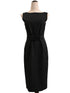 This Ted Baker black dress in size XS is in good condition, showcasing a timeless and elegant design. The sleeveless silhouette is enhanced by a belted waist, providing a flattering fit at the knee-length hemline. The dress features a zip closure at the back for easy wear, along with a stylish slit for added movement.