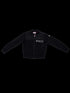 The jacket features a sleek black color, making it a versatile addition to any child's wardrobe. The front of the jacket is beautifully designed with the iconic Moncler logo, which is displayed prominently in a close-up image. The design includes practical elements such as side pockets and a functional front zipper for easy wear.