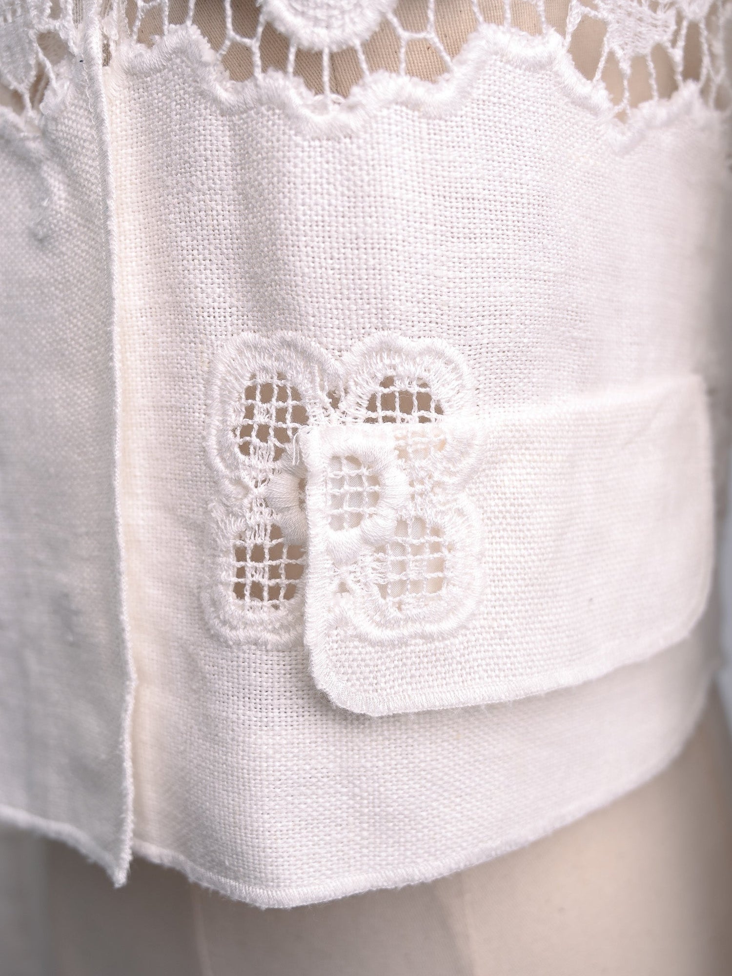 Care instructions recommend dry cleaning to maintain the integrity of the delicate lace material.