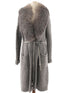 Loro Piana Gray Leather Knit Coat with Faux Fur Collar Size M