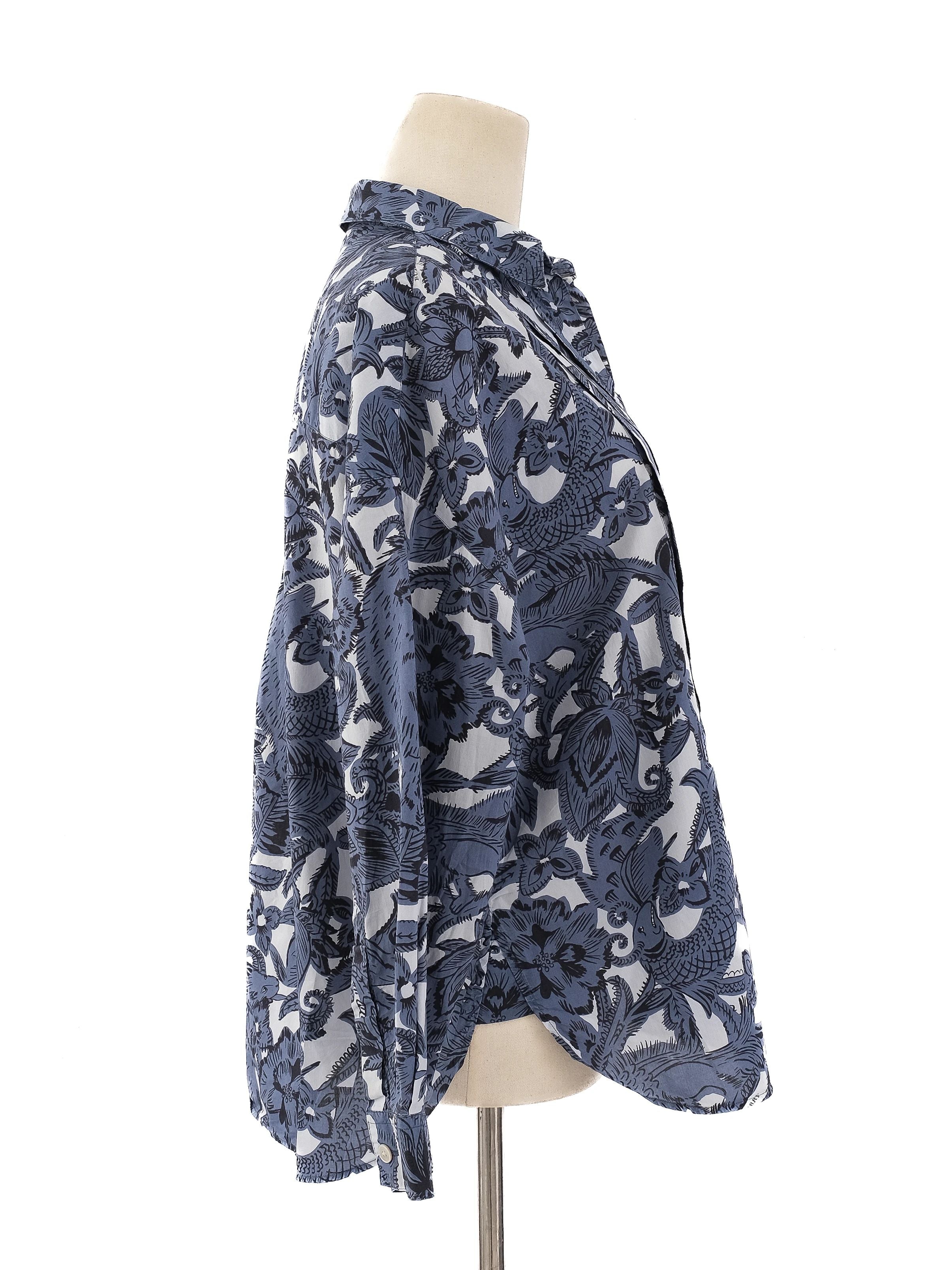 Burberry Blue Floral Animal Print Button-Up Shirt Women Size M