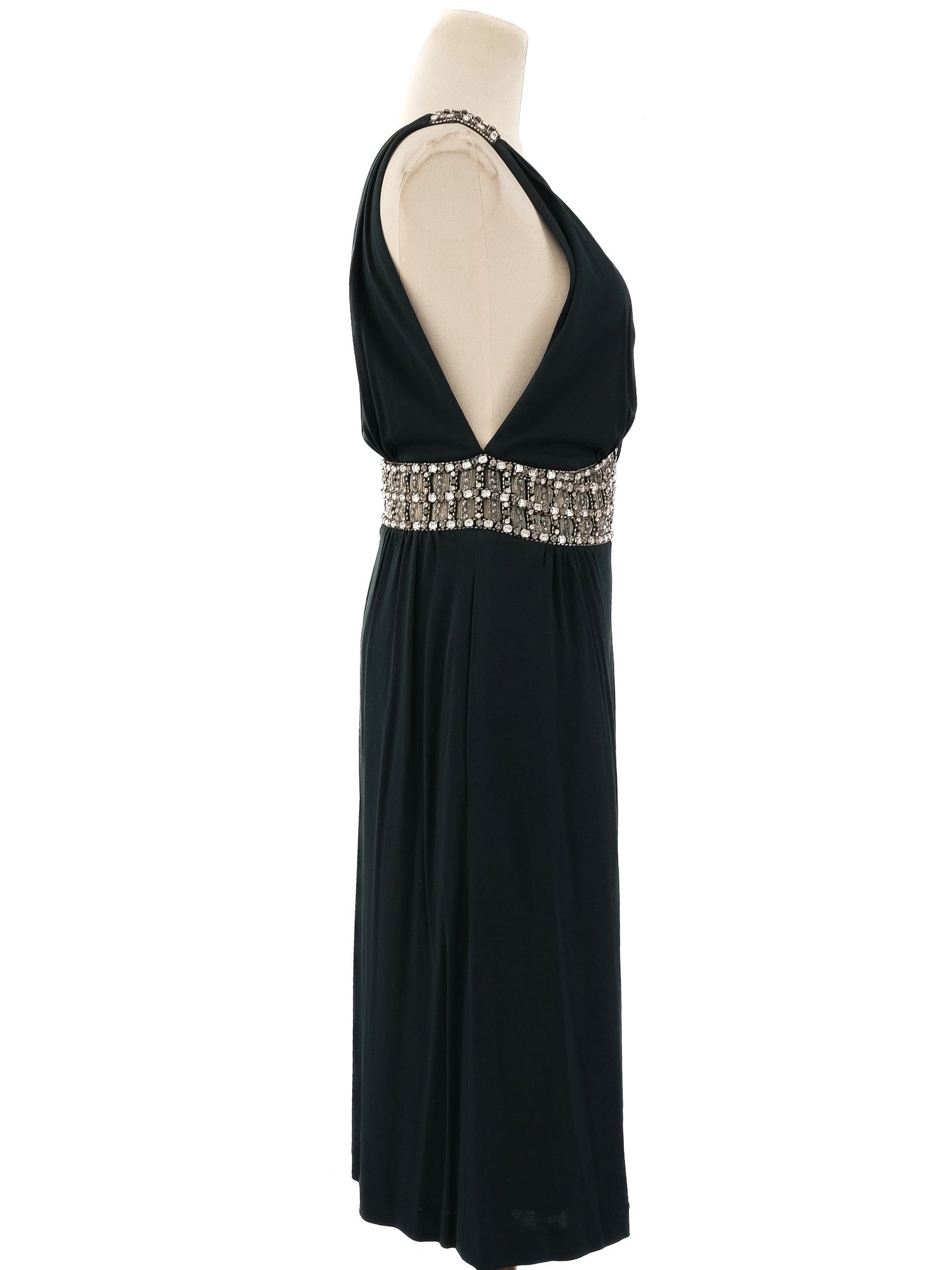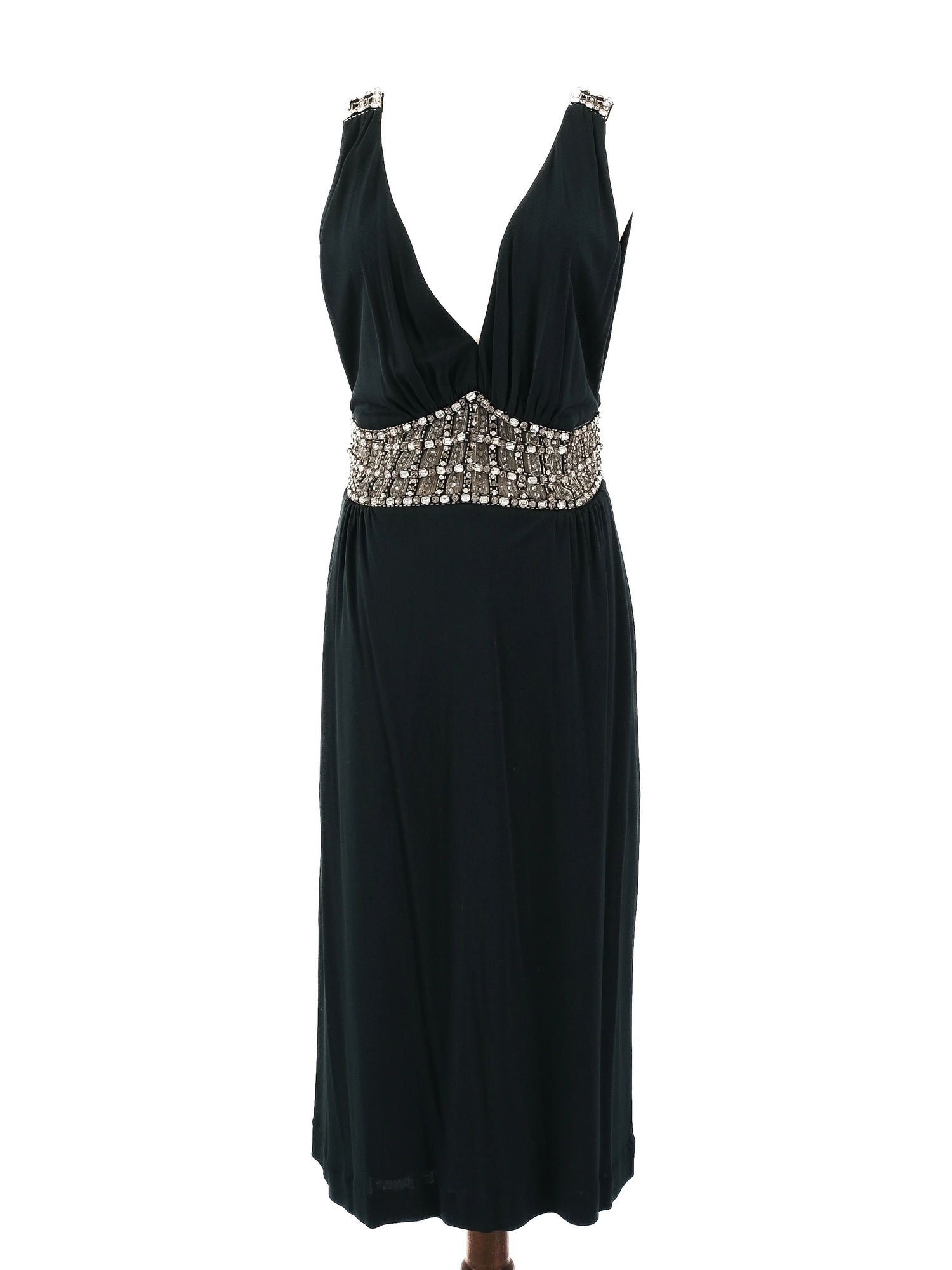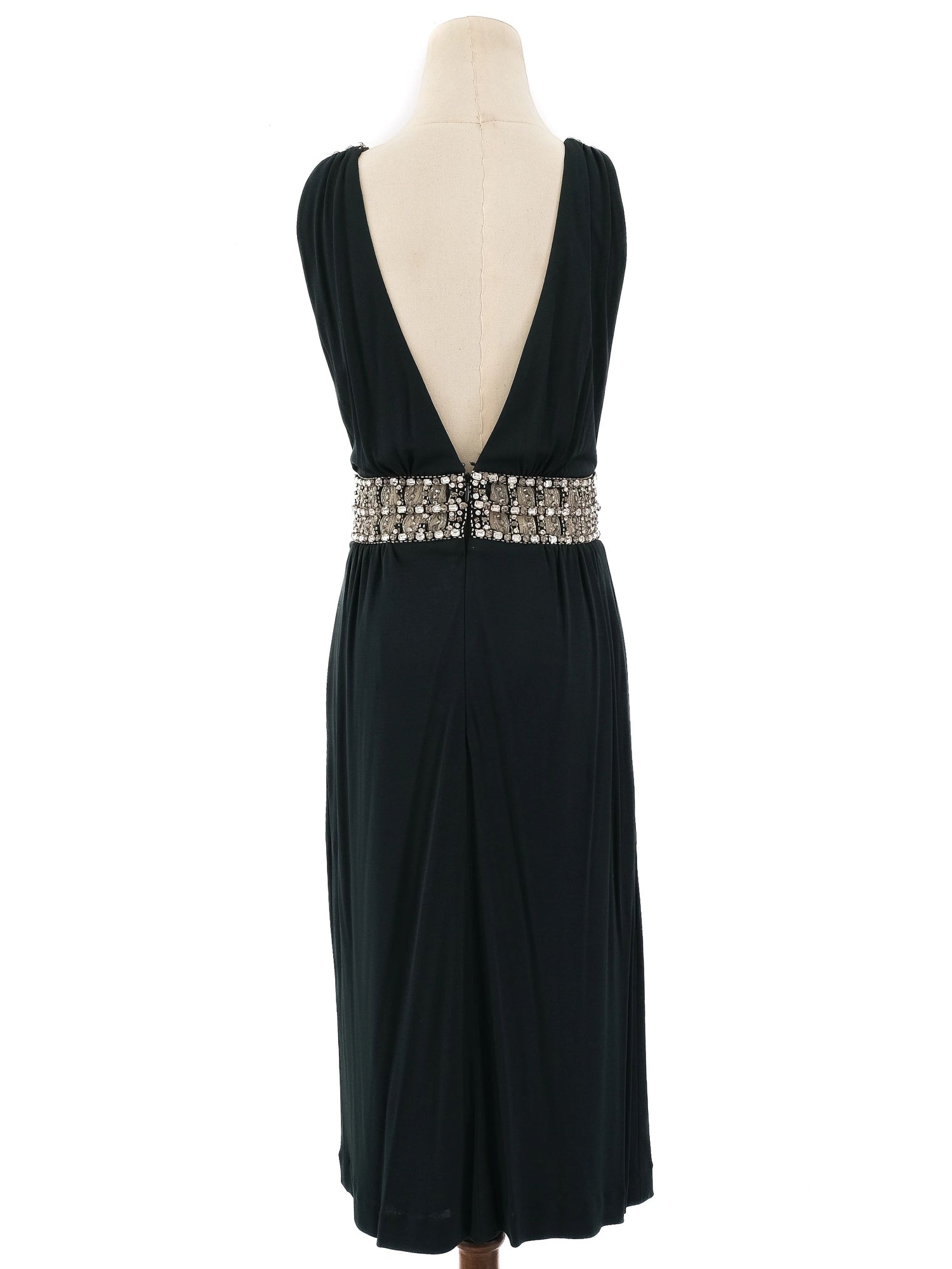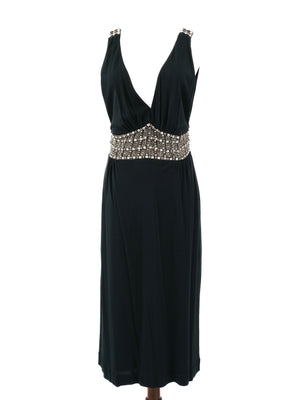 Azzaro Green Silk Sleeveless Dress Size L with Beaded Waistband
