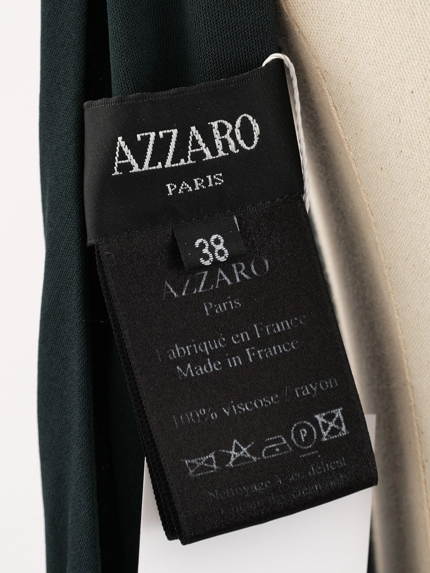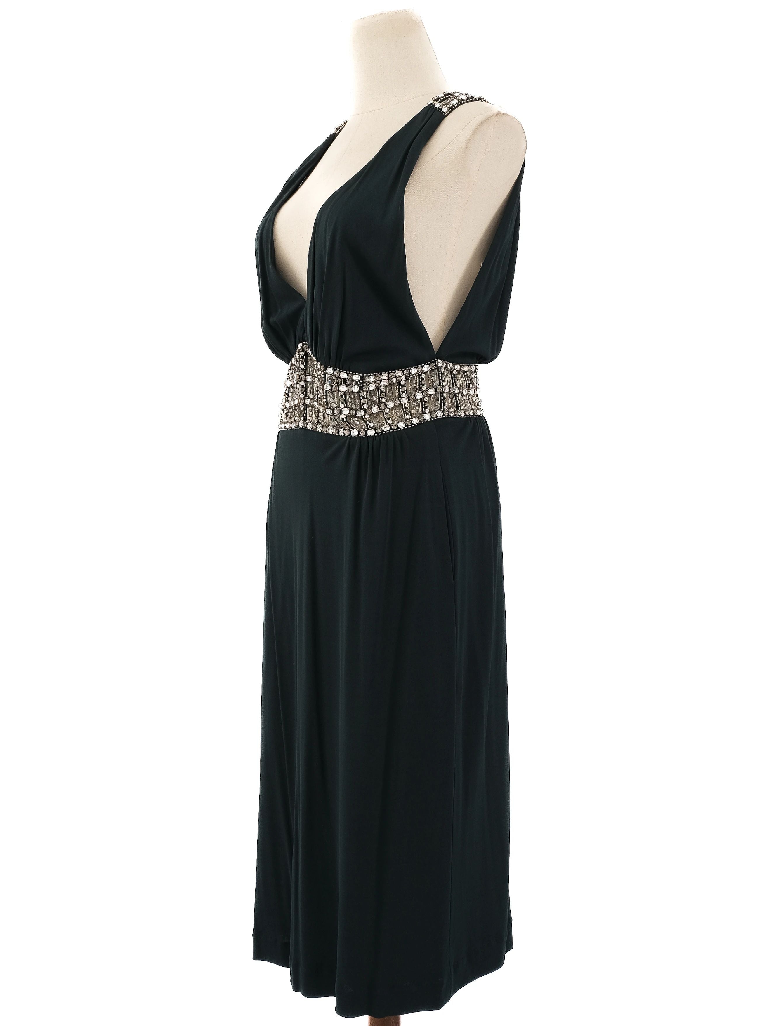 Azzaro Green Silk Sleeveless Dress Size L with Beaded Waistband This exquisite Azzaro dress features a stunning green color and is crafted from luxurious silk. In excellent condition, this dress has no visible flaws and fits true to size. It showcases a captivating deep V-neckline complemented by a stylish beaded waistband that adds an elegant touch. The dress is sleeveless with embellishments on the shoulder straps, and it boasts a low-cut back for a sophisticated silhouette. The flattering design is perfect for various occasions, from cocktail events to evening gatherings. Care instructions recommend dry cleaning to maintain the vibrant color and fabric quality. Embrace effortless elegance with this beautiful Azzaro piece in size L, perfect for any fashion-forward wardrobe. The stunning design and exquisite fabric make it a must-have for those looking to make a statement. Please message me to confirm shipping timeframe. My full-time job involves traveling often, and shipping out may take longer than usual. Thanks for your interest.