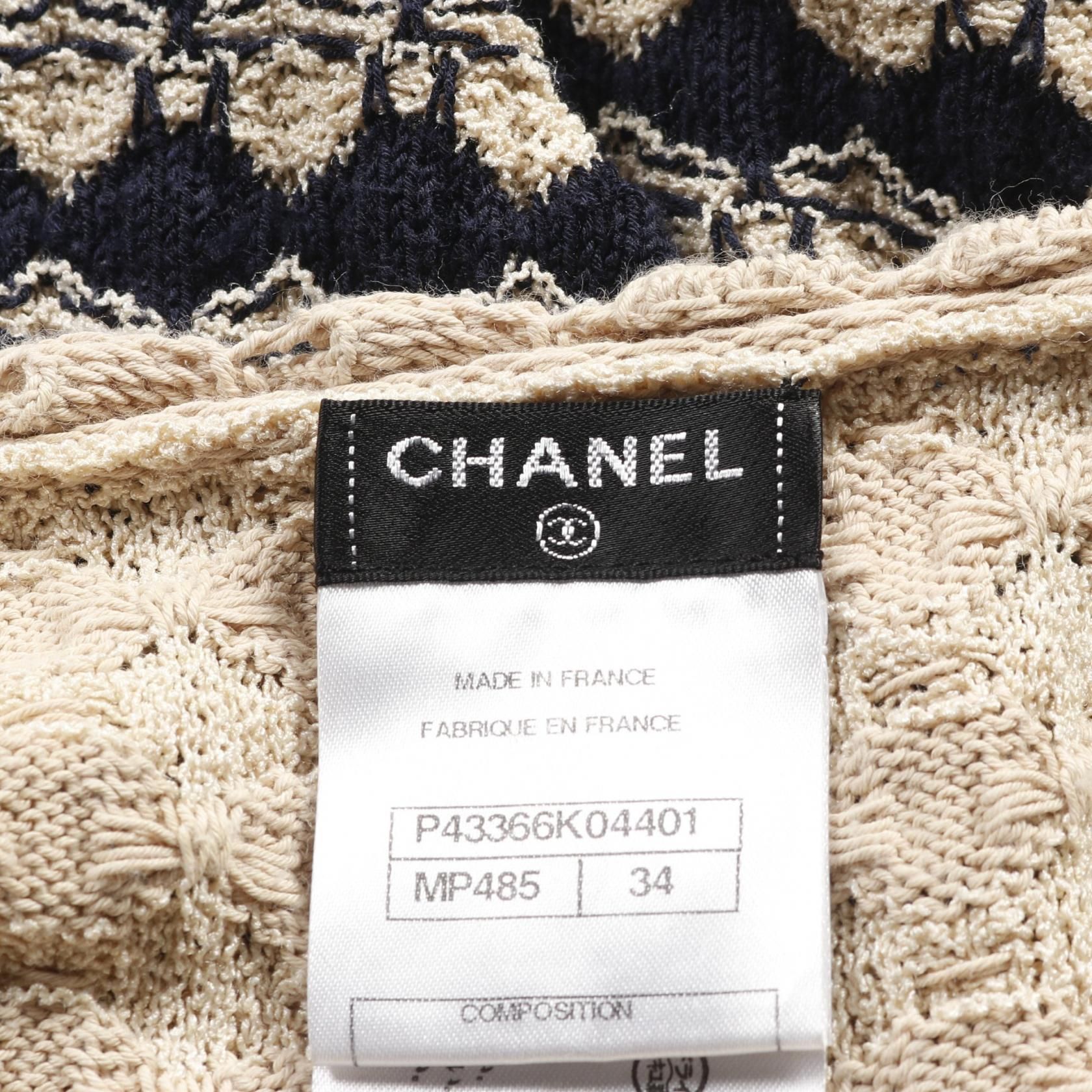 Chanel Navy Beige Coco Mark Button Dress Rayon Cotton Silk P 43366