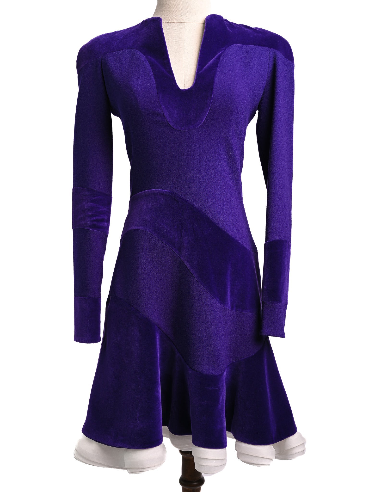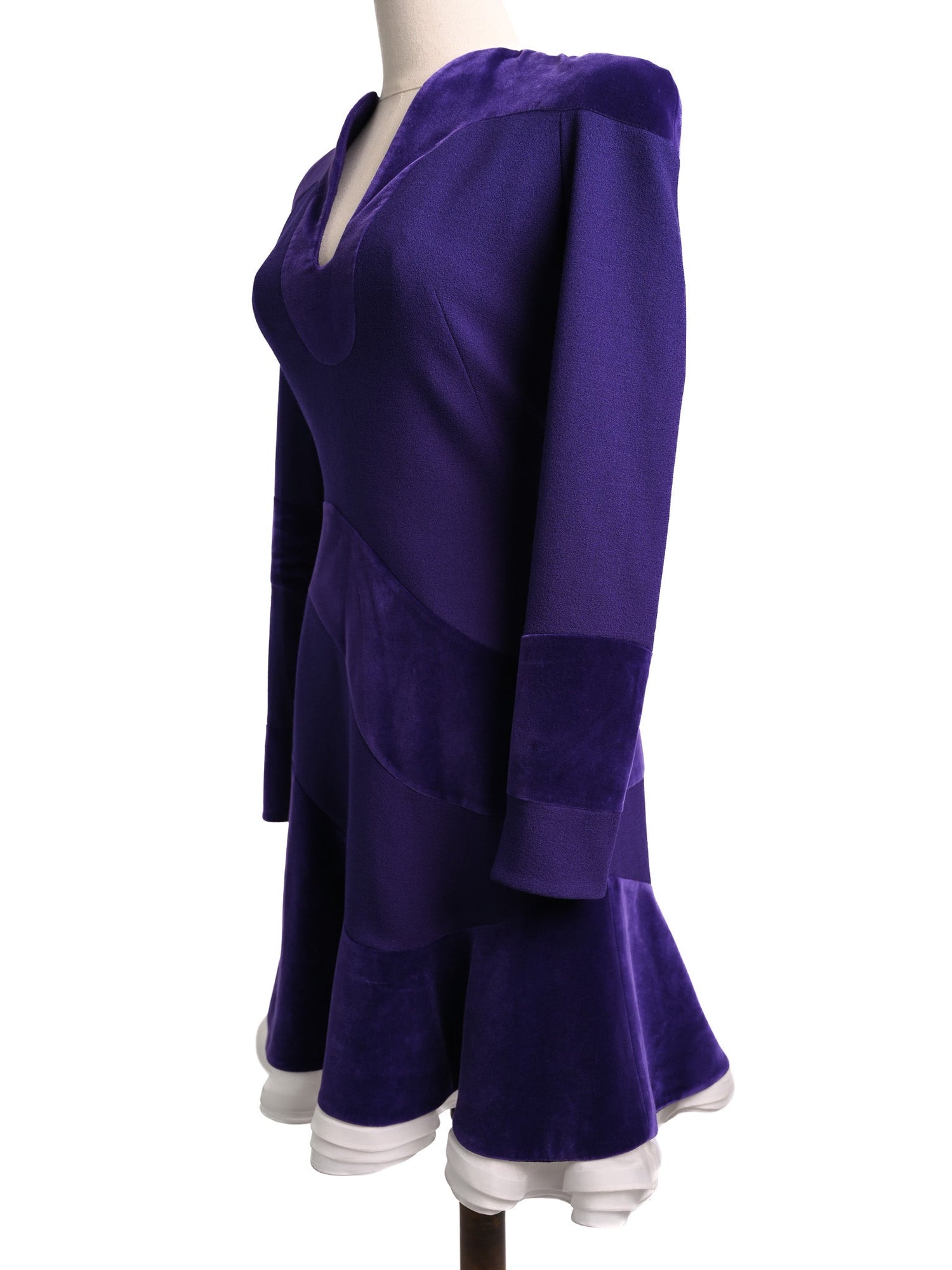 This stunning dress from Alexander McQueen features a vibrant purple hue that is sure to make a statement. Crafted from high-quality cotton, this dress is designed with long sleeves and showcases a charming flared skirt that adds movement and elegance to your look. The dress is in excellent condition, showing no signs of flaws, and fits true to size.