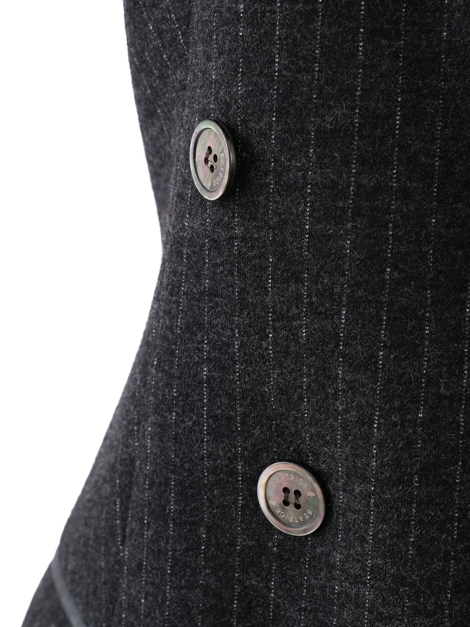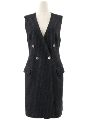 Excellent Beatrice B. Gray Wool Sleeveless Dress Size L. This stylish dress is crafted from high-quality wool, ensuring both comfort and elegance. It features a double-breasted design with a v-neck and buttons down the front, adding a sophisticated touch. The sleeveless cut makes it perfect for layering, and the pinstriped pattern enhances its professional appeal. Flap pockets on the sides provide practicality without sacrificing style. Condition is excellent with no visible flaws, and it fits true to size (L). ItÕs ideal for a variety of occasions, from office wear to evening events. Dry clean only to maintain its pristine condition. Approximate measurements: Body length: 40". The dress has a classic silhouette that flatters a range of body types. Make a statement with this chic Beatrice B. dress that combines modern design with timeless elegance. Please message me to confirm shipping timeframe. My full-time job involves traveling often, and shipping out may take longer than usual. Thanks for your interest.