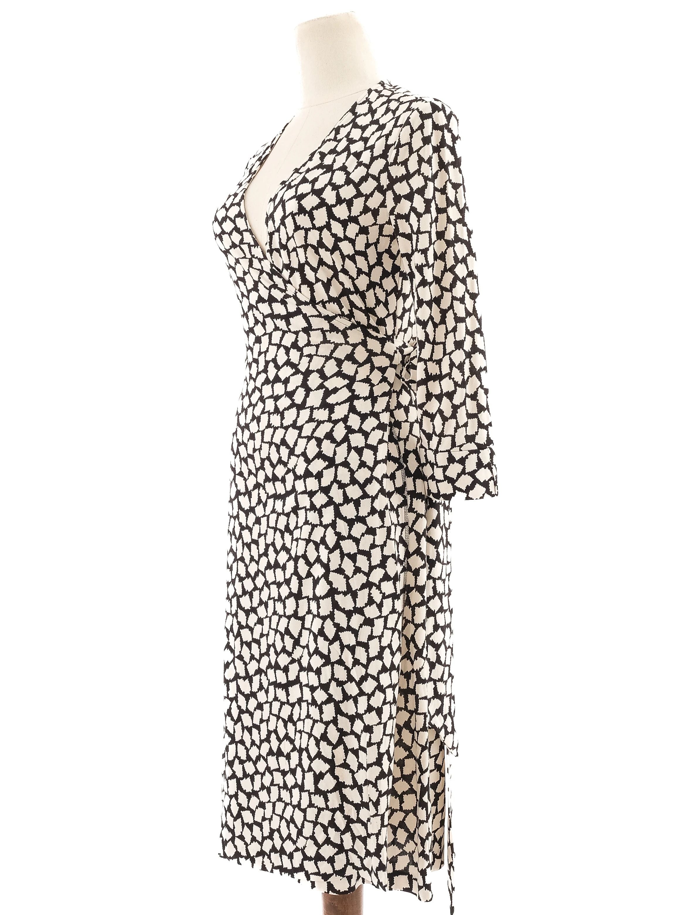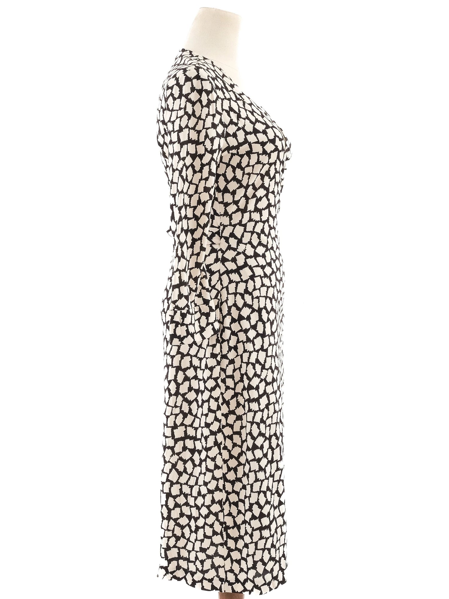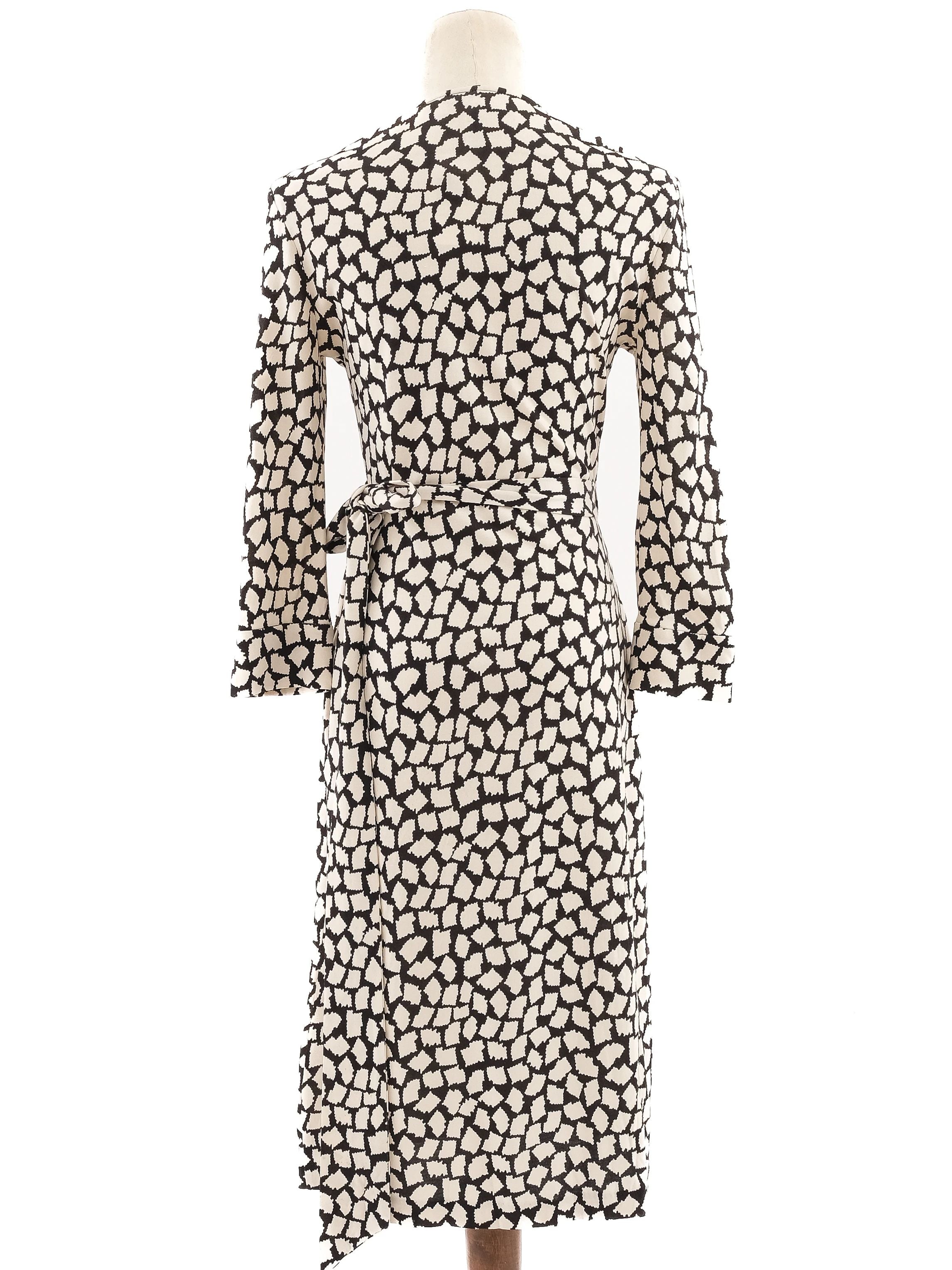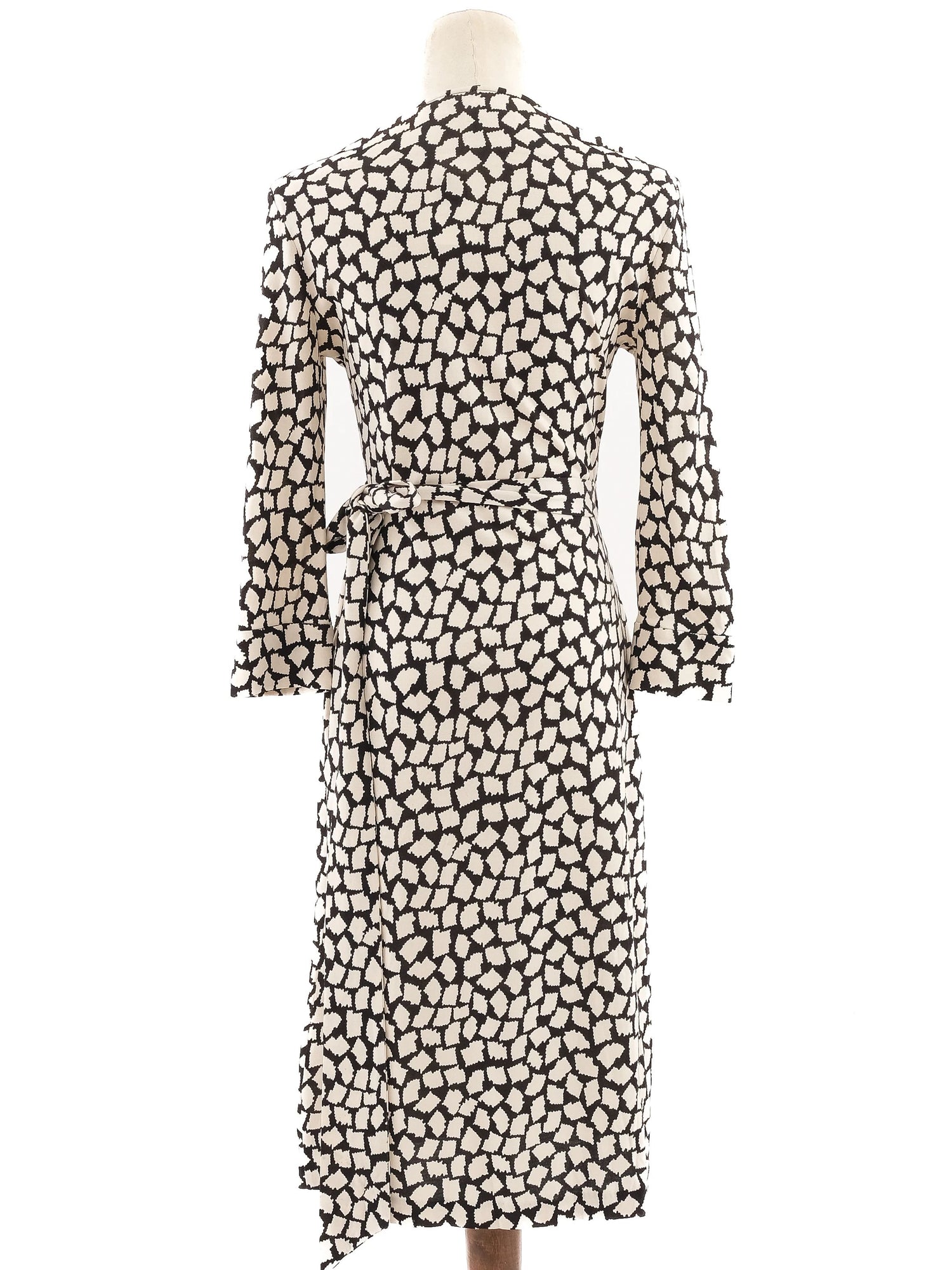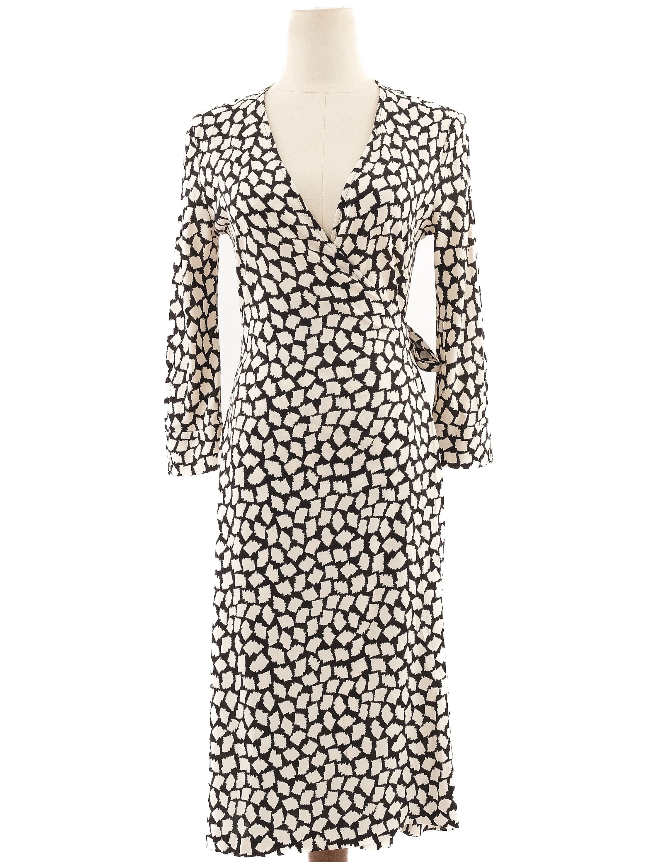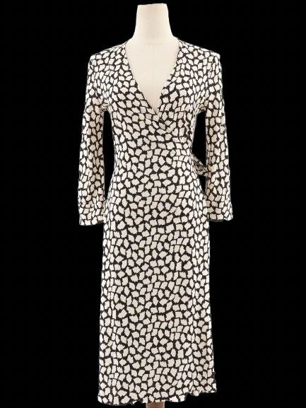 Excellent Diane von Furstenberg Wrap Dress S Silk Abstract Pattern This stunning Diane von Furstenberg wrap dress is in excellent condition, showcasing a unique black and white abstract pattern. Designed for women, it features long sleeves and a flattering V-neckline, perfect for a versatile wardrobe. The dress is cinched at the waist with a tie, enhancing its silhouette. Color: The dress combines striking black patches against a crisp white background, making it a standout piece for various occasions. Material: Made from high-quality silk, it drapes beautifully and is both luxurious and comfortable. Size: This dress is a size small, fitting true to size for a regular fit. Care instructions: Dry clean only to maintain its exquisite fabric and print. Additional details include: - Long sleeves for added elegance. - Wrap style silhouette that flatters the figure. - Versatile enough for both casual and semi-casual events. This dress would be a perfect addition to a smoke-free and pet-free home, ensuring it stays in pristine condition. DonÕt miss out on this timeless piece that embodies the sophistication of Diane von Furstenberg. Please message me to confirm shipping timeframe. My full-time job involves traveling often, and shipping out may take longer than usual. Thanks for your interest.