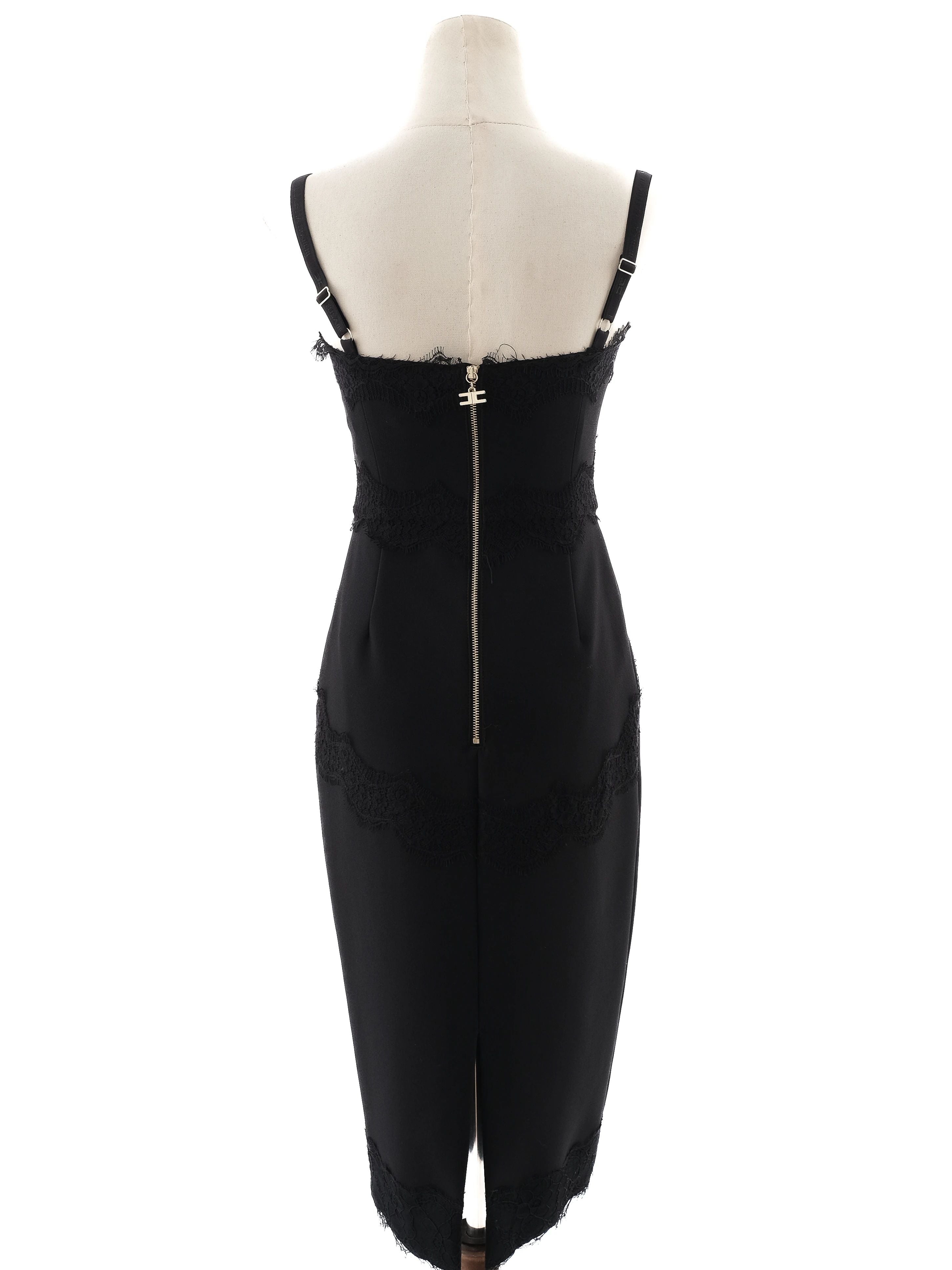 Excellent Elisabetta Franchi Black Dress with Lace Detail Size S