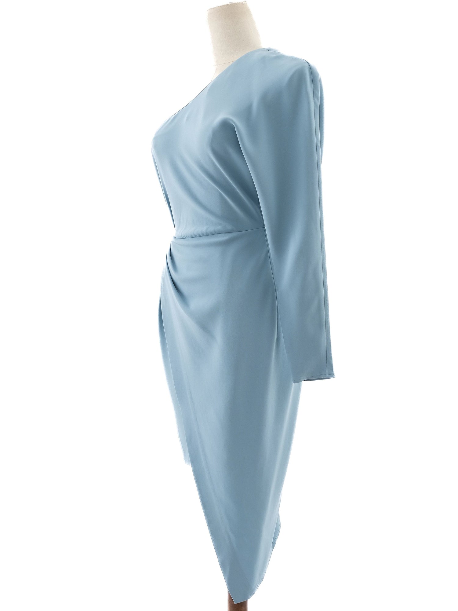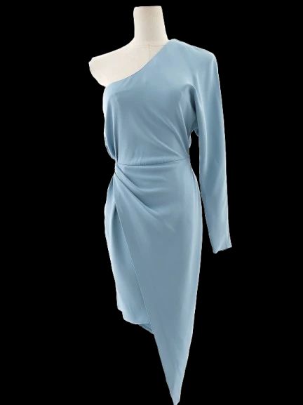 Excellent Elisabetta Franchi Light Blue One-Shoulder Dress Women This stunning dress by Elisabetta Franchi is perfect for any special occasion or evening event. The dress showcases a beautiful light blue color and features a stylish one-shoulder design that accentuates the silhouette with its asymmetrical draped style and a single long sleeve. Crafted from high-quality viscose, this dress is not only luxurious but also comfortable for wear. The excellent condition of the piece ensures that it is ready to be worn with no visible flaws. With its unique design, it is sure to be a standout addition to any wardrobe. Care instructions recommend dry cleaning to maintain the fabric's pristine quality. The dress offers a sophisticated look that can easily be styled for both formal and semi-casual occasions. This dress comes from a smoke-free and pet-free home, ensuring that it is in the best possible condition for its new owner. Please message me to confirm shipping timeframe. My full-time job involves traveling often, and shipping out may take longer than usual. Thanks for your interest.
