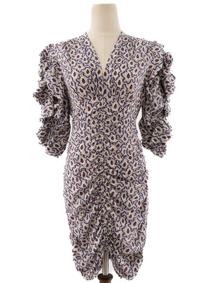 Excellent Isabel Marant Silk Dress V-Neck Ruffled Sleeves Size S This exquisite Isabel Marant dress is a standout piece crafted from luxurious silk, ensuring both comfort and elegance. The combined color features a stunning pattern in rich purple and beige tones, perfectly suited for any stylish woman. With a fitted silhouette, this dress highlights your figure while providing a sophisticated look. The design is enhanced by a flattering V-neckline and ruffled sleeves, adding a feminine touch that makes it ideal for both casual outings and more formal events. The gathered design throughout gives the dress a unique flair, making it a versatile addition to your wardrobe. In excellent condition, this dress has no flaws and fits true to size (Size S). It is perfect for various occasions, including semi-casual gatherings or even cocktail parties. Care instructions recommend dry cleaning only to maintain its quality and vibrant colors. Don't miss out on this stunning piece from Isabel MarantÑit's a timeless choice that combines trendy design with high-quality materials, perfect for the modern woman. Please message me to confirm shipping timeframe. My full-time job involves traveling often, and shipping out may take longer than usual. Thanks for your interest.