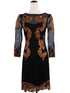 Excellent Karen Millen Black Dress Orange Floral Embroidery Size S