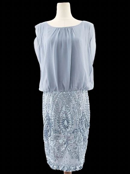Excellent Luisa Spagnoli Blue Silk Evening Dress Size XL This stunning evening dress by Luisa Spagnoli is in excellent condition and has no flaws. Crafted from luxurious silk, it features a beautiful light blue hue ideal for formal occasions. The dress boasts a sleeveless design with a round neckline and a stylish keyhole back closure, allowing for ease of movement while adding an elegant touch. The top part of the dress is made from a soft, flowy fabric that drapes gracefully, while the skirt is embellished with intricate beading and sequins, creating a dazzling effect. Size XL ensures a comfortable fit for various body shapes, making it a perfect choice for evening events or cocktail parties. Care instructions recommend dry cleaning to maintain the garment's exquisite design and material quality. Be the center of attention in this exquisite Luisa Spagnoli dress that combines elegance and sophistication effortlessly. Please message me to confirm shipping timeframe. My full-time job involves traveling often, and shipping out may take longer than usual. Thanks for your interest.