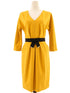 Excellent Luisa Spagnoli Yellow V-Neck Dress Size M with Belt