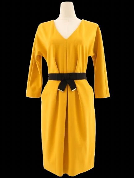 Excellent Luisa Spagnoli Yellow V-Neck Dress Size M with Belt This stunning yellow dress by Luisa Spagnoli is perfect for any occasion. Designed in a comfortable medium size, this dress features long sleeves and an elegant V-neckline that adds a touch of sophistication to your wardrobe. The highlighted asset of this dress is the black belt at the waist adorned with a decorative bow, which beautifully cinches in the silhouette creating a flattering shape. Made from high-quality viscose, this dress not only feels soft against the skin but also drapes beautifully. The vibrant yellow color is eye-catching and perfect for both daytime events and evening outings. In excellent condition, this piece has no flaws and fits true to size, making it a reliable choice for your fashion collection. It is easy to care for, with dry cleaning recommended to maintain its pristine appearance. Approximate measurements and details: - Size: M - Color: Yellow - Neckline: V-neck - Sleeve Length: Long sleeves - Additional Detail: Black belt with a decorative bow This dress will suit a variety of occasions, whether youÕre attending a casual gathering or looking for an outfit for a semi-casual event. From a smoke-free and pet-free home, this Luisa Spagnoli dress represents both elegance and versatility, making it an essential addition to your wardrobe. Please message me to confirm shipping timeframe. My full-time job involves traveling often, and shipping out may take longer than usual. Thanks for your interest.