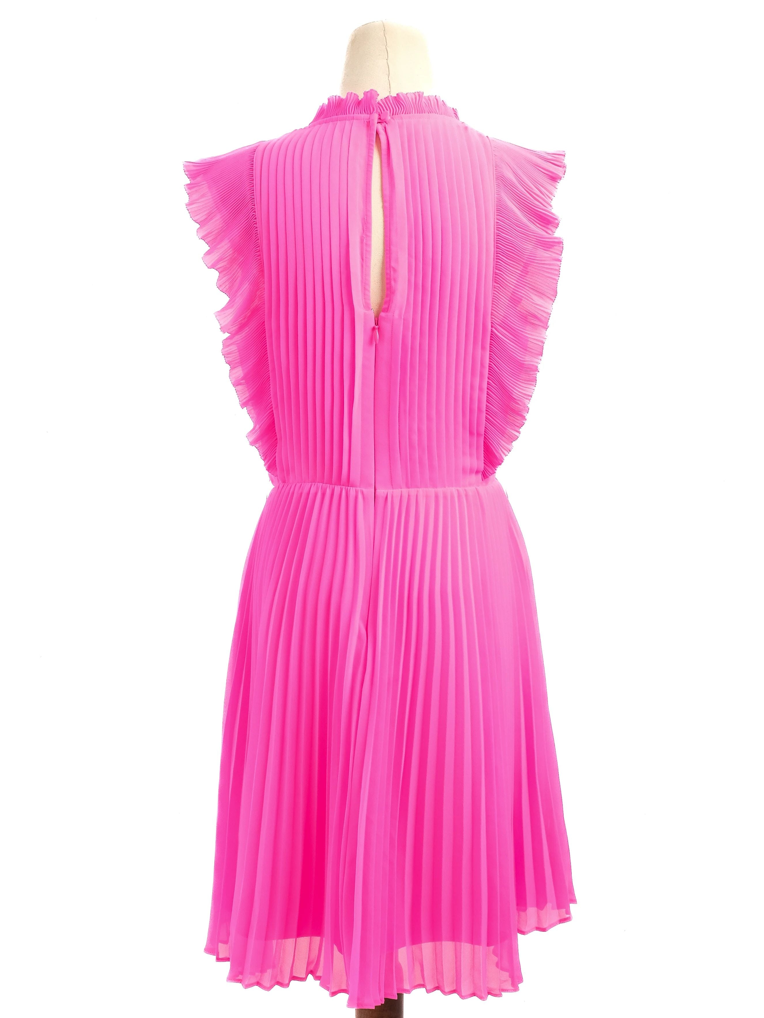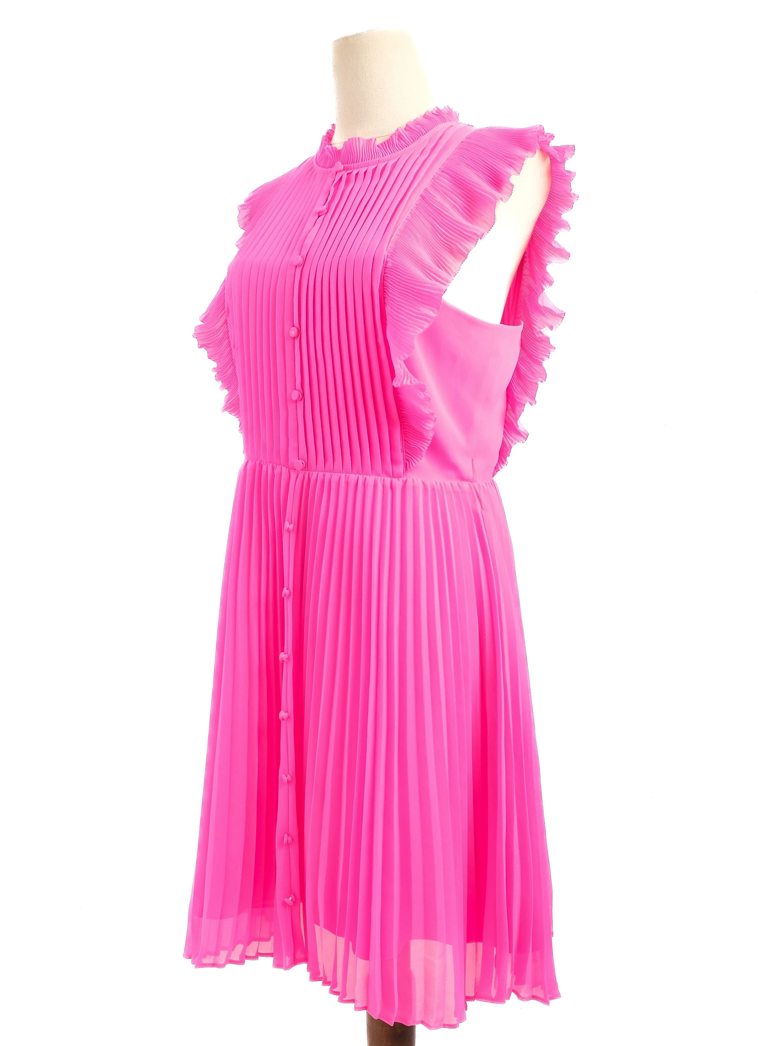 Excellent Self-Portrait Pink Pleated Dress with Ruffled Sleeves