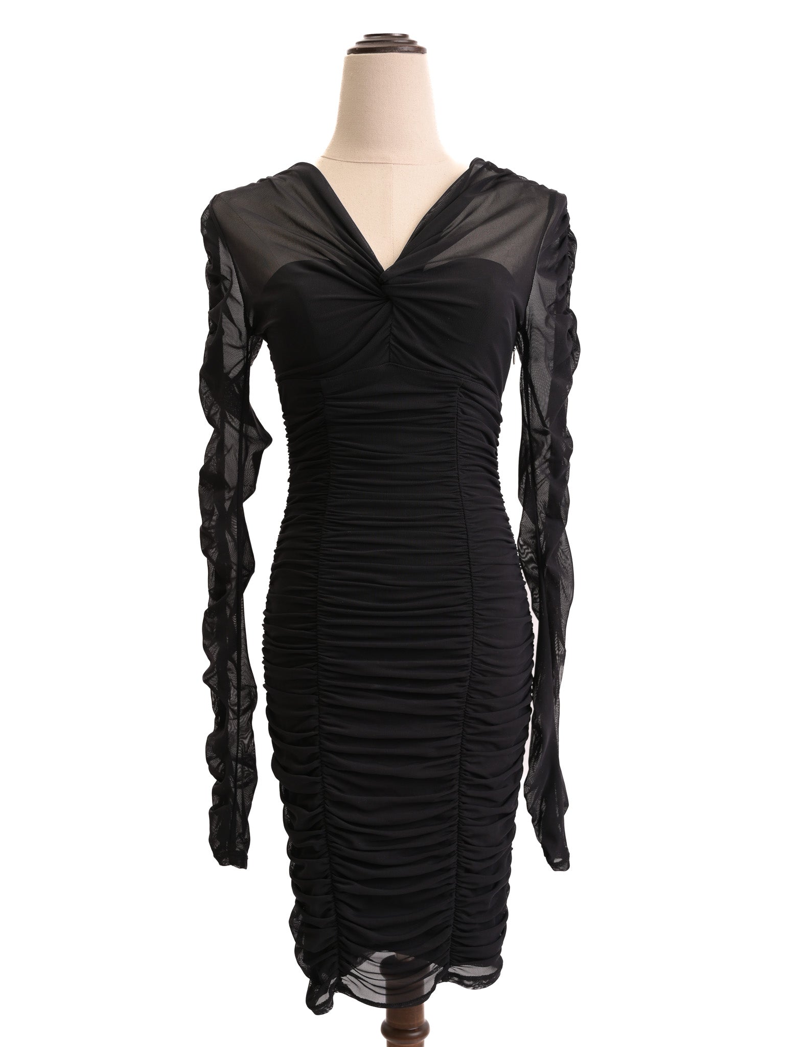 Good Guess Black Dress XS with Sheer Sleeves and Ruched Design