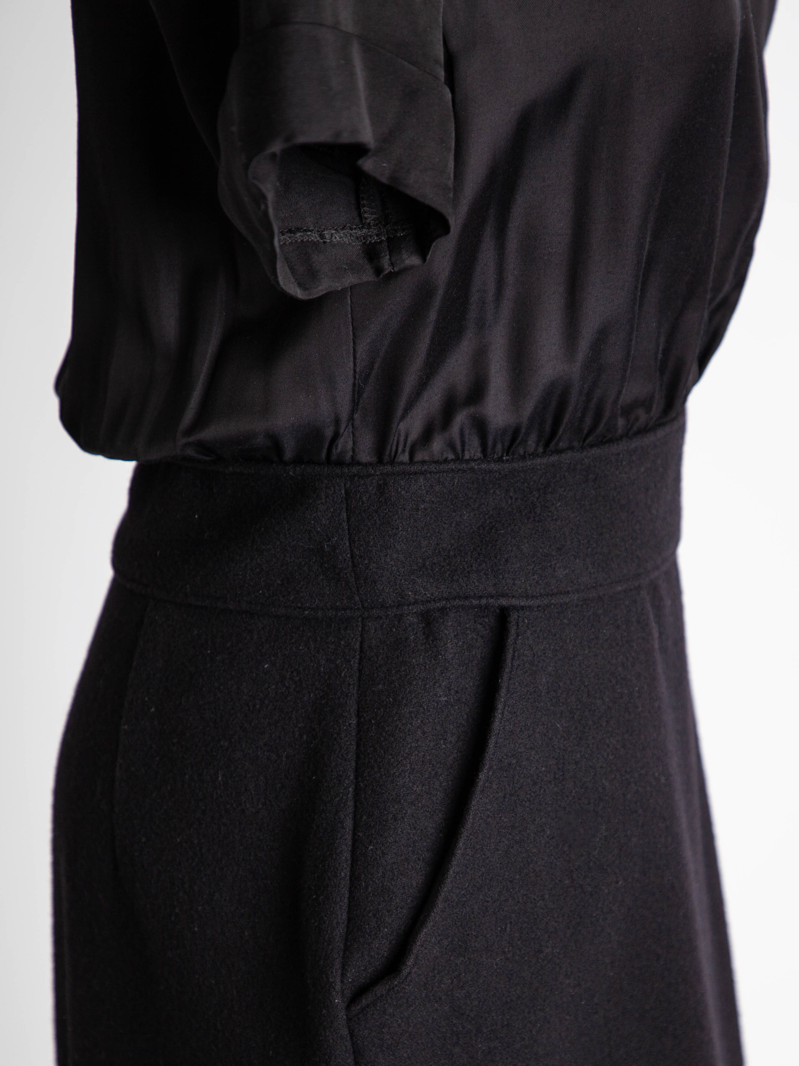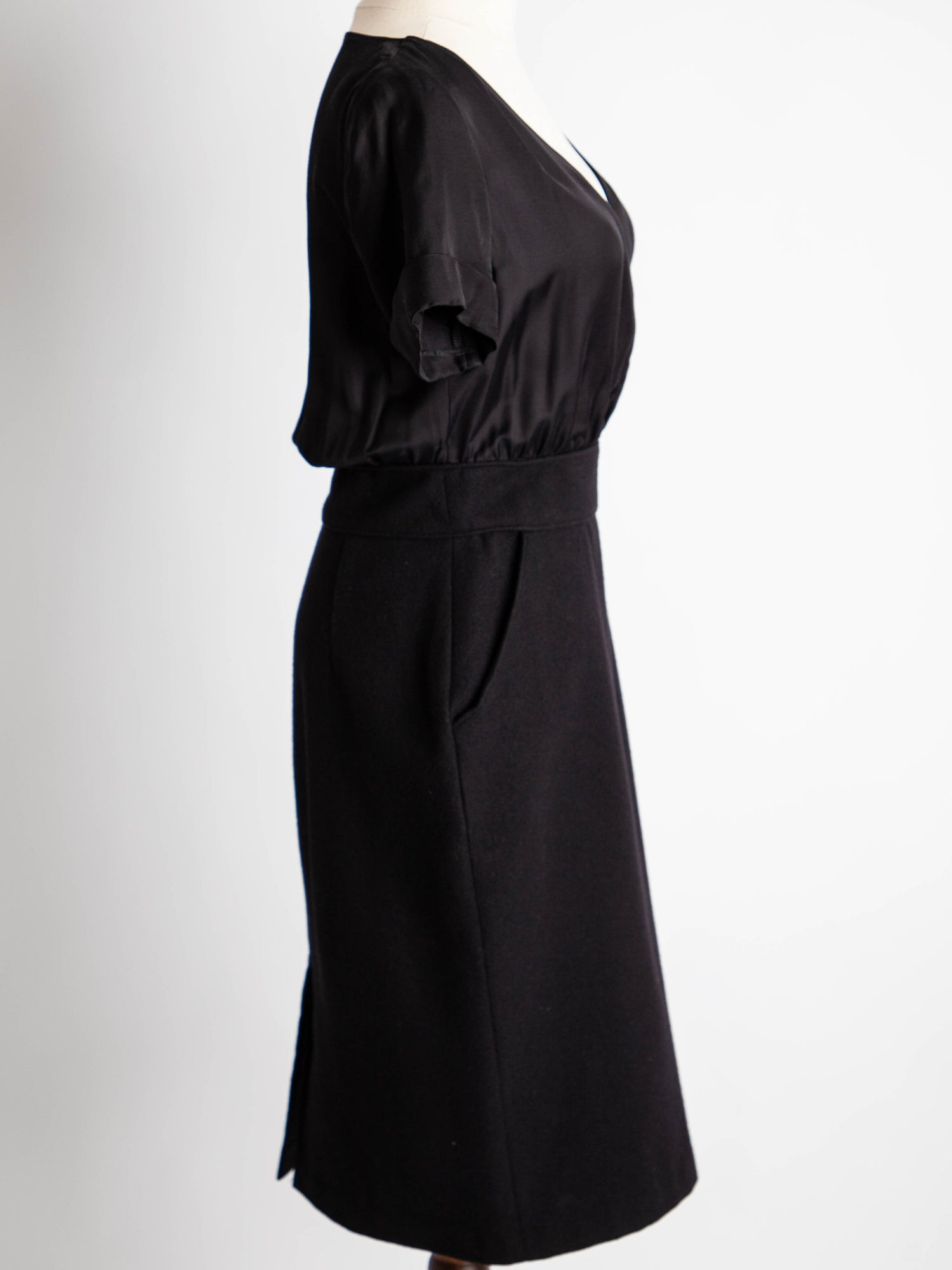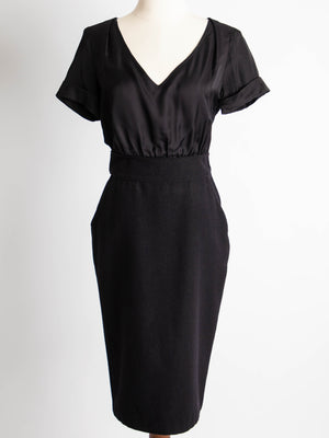 Good NAF NAF Black Wool Dress Size XS Elegant V-Neck Short Sleeve