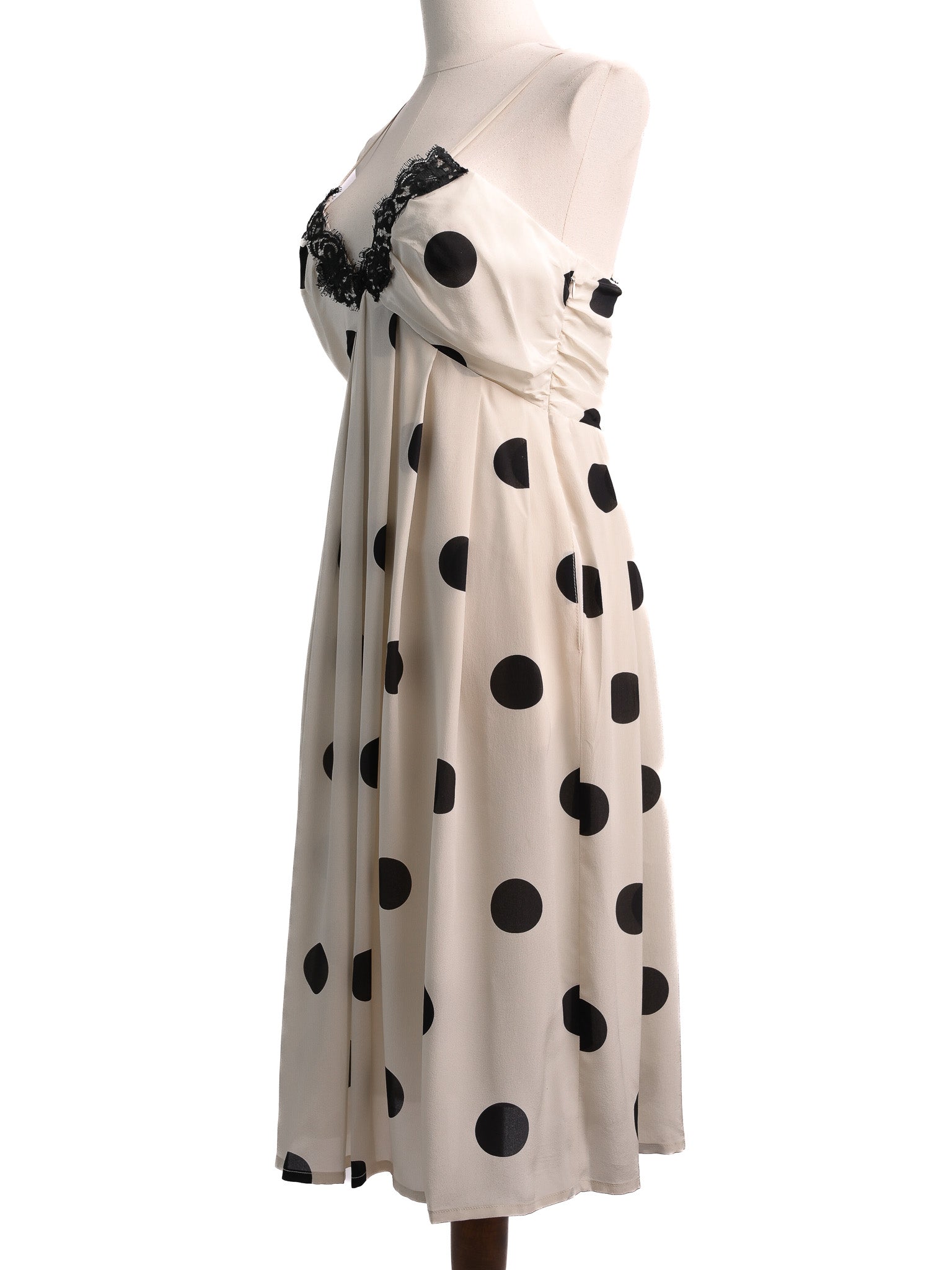 NEW Clips White Polka Dot Silk Dress with Black Lace Size M