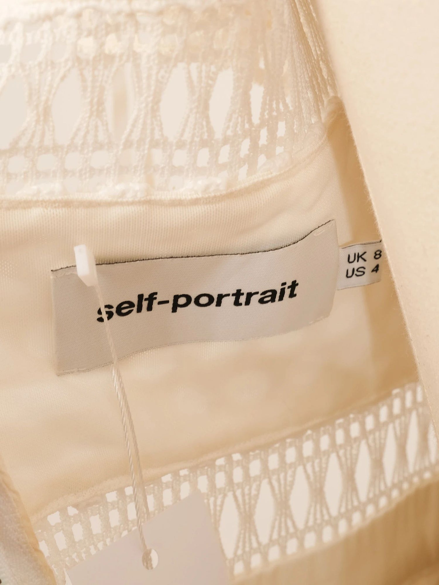 Self-Portrait White Lacy Full-Length Dress Size S Excellent Condition This stunning white full-length dress by Self-Portrait is perfect for any elegant occasion. The dress features intricate lace patterns, short sleeves, and a slightly fitted bodice that beautifully defines the waist before flowing into a graceful skirt. The exquisite design showcases the brand's commitment to high-quality, feminine aesthetics. Condition: Excellent with no visible flaws, this dress fits true to size S. The thoughtfully crafted polyester material gives this dress both comfort and an elegant drape, making it a fantastic choice for various events. Additional details include a flowing silhouette that adds movement and charm, perfect for cocktail parties, summer weddings, or formal gatherings. The defined waist creates a flattering shape, while the delicate lace details add a touch of sophistication. Care instructions recommend dry cleaning to maintain the dress's pristine quality. This piece comes from a smoke-free and pet-free home, ensuring it has been kept in excellent condition. Elevate your wardrobe with this beautiful Self-Portrait dress that combines timeless elegance with modern style. Please message me to confirm shipping timeframe. My full-time job involves traveling often, and shipping out may take longer than usual. Thanks for your interest.