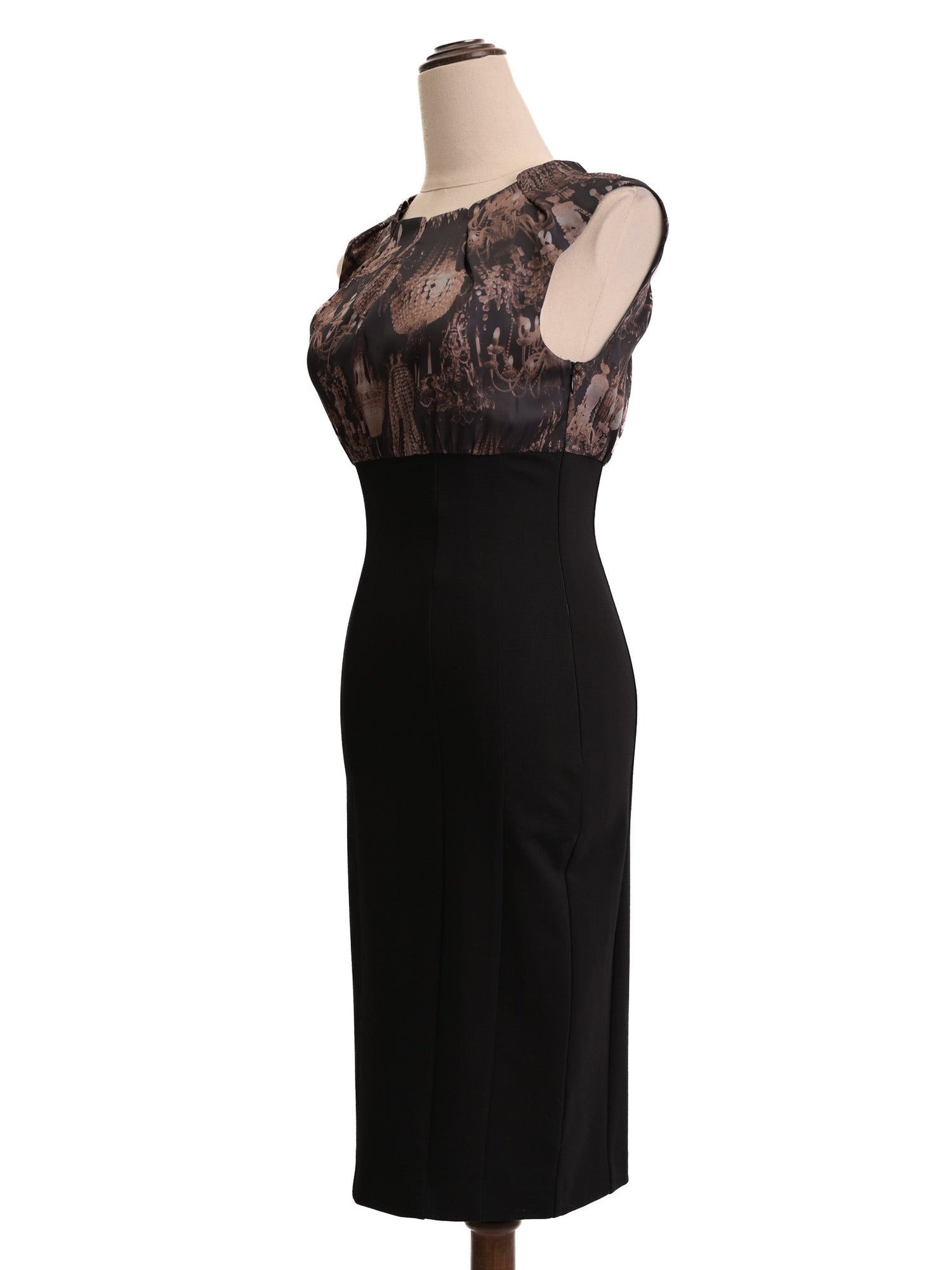 The dress is sleeveless, making it perfect for warmer occasions or layered for additional styling options. Ideal for cocktail parties, evening outings, or semi-casual events.