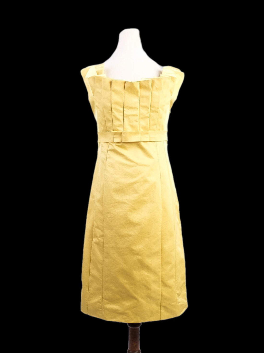 Good Karen Millen Yellow Dress M Square Neckline Pleated Detail