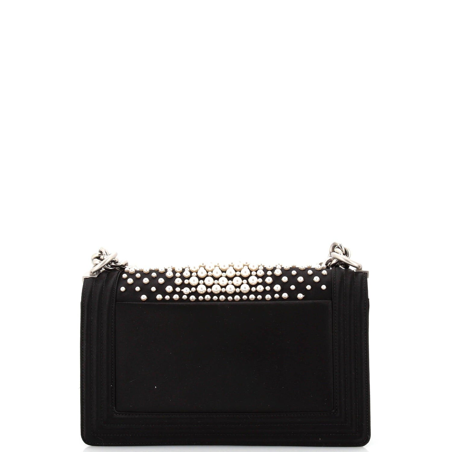 Model:Boy Flap Bag Pearl Embellished Satin Old Medium