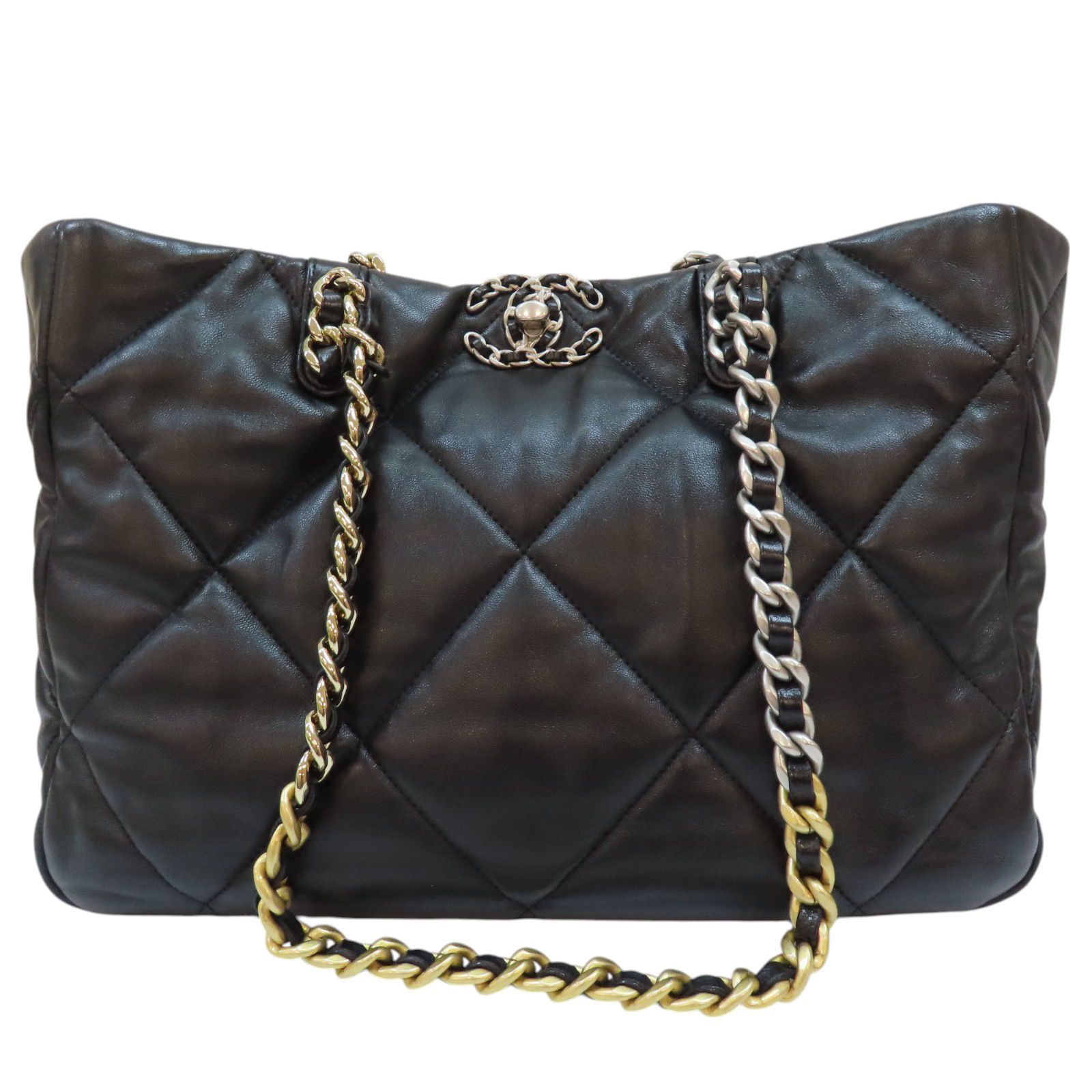 Chanel 19 Shopping Tote Bag Black Quilted Lambskin As 3660