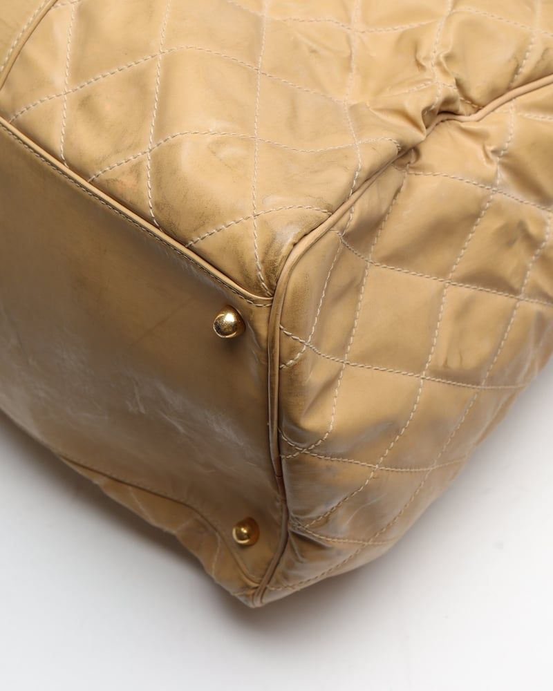 CHANEL Patent Weekend Bag- Gold-tone hardware- Beige quilted leather- Dual handles and detachable shoulder strap- Beige lining with two pockets- VintageOverall Preloved Condition: Good.Exterior Condition: Good. Scratches with discoloration and slightly faded leather. Slightly wrinkled trim.Interior Condition: Very Good. Clean with minor marks.Hardware: Discoloured.Delivered with serial number tag, clochette and detachable shoulder strapMade in ItalySerial number: 4******(1996-1997)Dimensions:Height 24 cmWidth 44 cmDepth 18 cmHandle drop 14 cmShoulder strap drop 32 cmPlease note that the majority of our items are vintage and therefore have tales to tell unless stated otherwise. Therefore, please look at pictures, descriptions and measurements provided as they give you the best idea of the story this item has to tell.* Please note that when you buy a vintage product, the dimensions may vary slightly from a new one depending on previous care and storage.