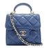 Chanel Top Handle Flap Clutch Chain Shoulder Bag Blue Quilted Lambskin