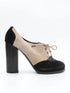 Excellent Antonio Marras Women's Leather Lace-Up High-Heels Size 38. This stylish pair of high-heeled shoes showcases a distinctive design by the renowned brand Antonio Marras. Crafted from genuine leather, these shoes combine beige, brown, and black colors to create a sophisticated and versatile look suitable for various occasions. The subtly chunky heel design adds a trendy touch while ensuring comfort during wear. With a lace-up closure, these shoes provide a secure fit and allow for a customizable look. Condition is excellent, with no visible flaws, and the shoes fit true to size. Perfect for elevating any outfit, whether for a casual outing or a more semi-casual event. Upper: Genuine Leather Sole: Durable Material Care instructions: For optimal care, spot clean with a leather cleaner to maintain the shoe's quality. Embrace style and comfort with these elegant shoes that are sure to be a standout addition to your wardrobe. Please message me to confirm shipping timeframe. My full-time job involves traveling often, and shipping out may take longer than usual. Thanks for your interest.