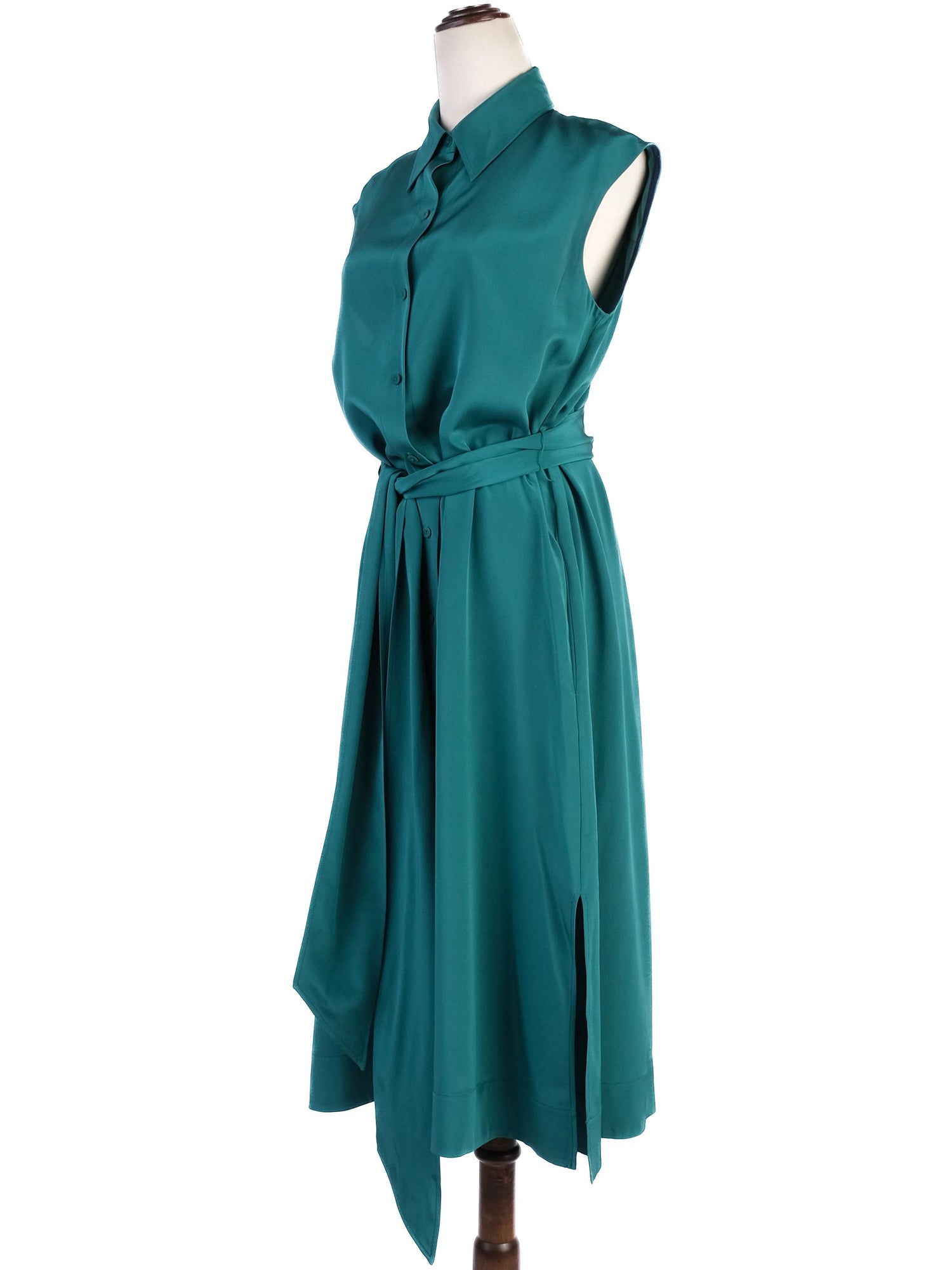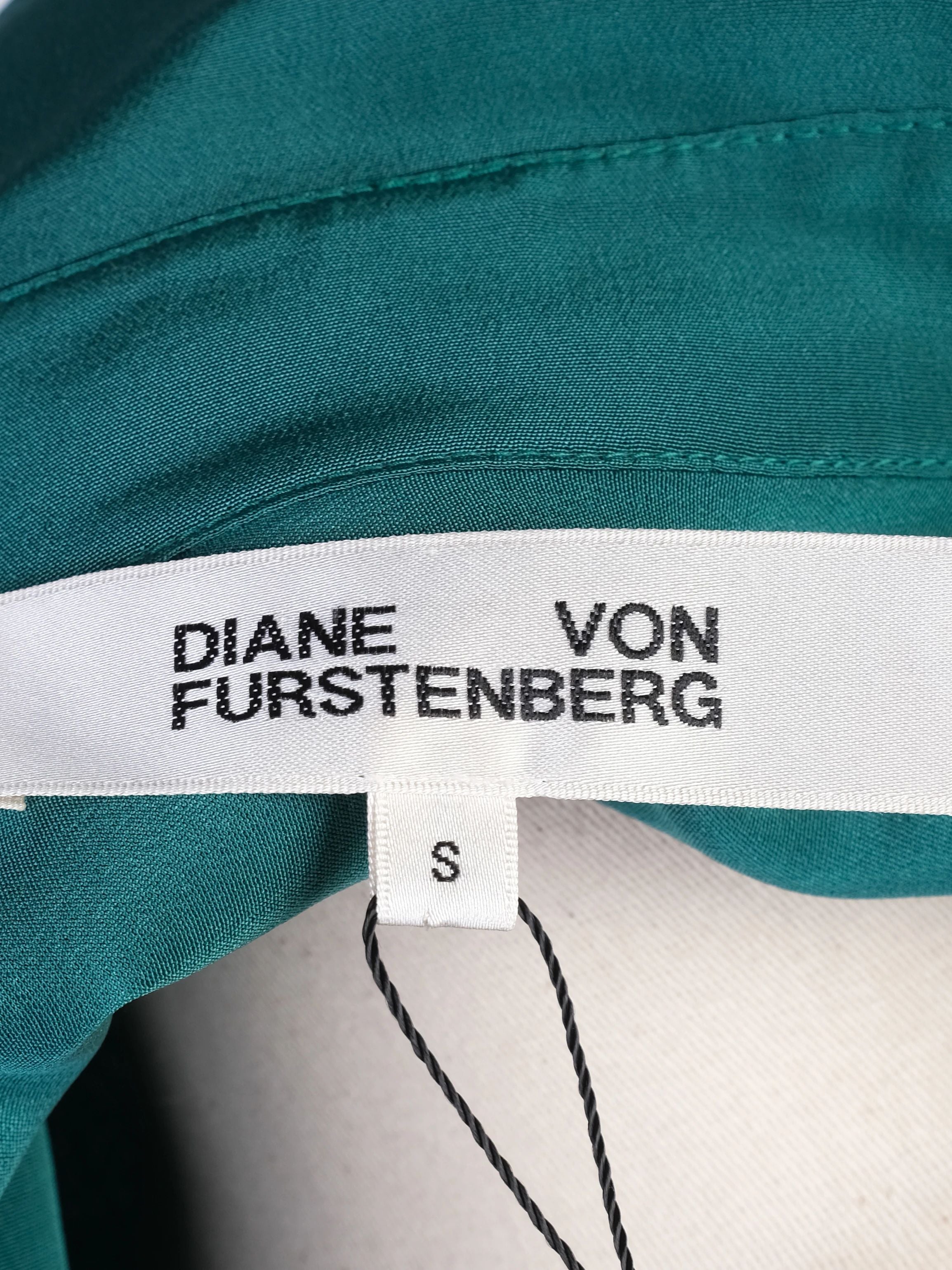Excellent Diane von Furstenberg Green Silk Midi Dress Size S. This exquisite teal sleeveless shirt dress by Diane von Furstenberg is crafted from 100% silk, ensuring a luxurious feel and elegant drape. In excellent condition, this dress features a classic collared neckline and a button-up front, providing a stylish yet sophisticated look. The matching waist tie cinches at the waist, allowing for a flattering silhouette, while the midi length with side slits adds a modern touch to a timeless design. Size S and designed to fit true to size, this dress is perfect for various occasions, whether it's a casual day out or a smart daytime event. The vibrant green color is versatile, easily paired with both casual sandals or chic heels. Care instructions: Dry clean only. Additional details include: - Side slits for added comfort and movement - Tailored fit with a graceful silhouette - Lightweight, breathable silk fabric for all-day wear Please note, this is from a smoke-free home and has been well-cared for. Elevate your wardrobe with this stunning piece that embodies both elegance and comfort. Please message me to confirm shipping timeframe. My full-time job involves traveling often, and shipping out may take longer than usual. Thanks for your interest.