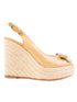 Excellent Dior Orange Leather High-Wedge Sandals Size 37.5. These stunning sandals feature a high-heeled wedge design that combines style and comfort. The slingback design includes a secure buckle strap, while the peep toe is adorned with a decorative bow, adding a feminine touch. The high platform wedge heel is beautifully wrapped in woven jute, enhancing the summer-ready vibe. The upper part of the sandals showcases a glossy beige color that perfectly contrasts the vibrant orange hue, making these sandals a versatile addition to your wardrobe. They are made from high-quality leather, ensuring durability and a luxurious feel. The size 37.5 fits true to size and is ideal for casual outings or semi-casual occasions. Condition is excellent, with no visible flaws, making these sandals perfect for anyone looking to add a designer piece to their collection. Care instructions: Spot clean with a leather cleaner to maintain their beauty. Elevate your footwear game with these chic and stylish Dior sandals, perfect for any fashion-forward woman. Please message me to confirm shipping timeframe. My full-time job involves traveling often, and shipping out may take longer than usual. Thanks for your interest.