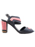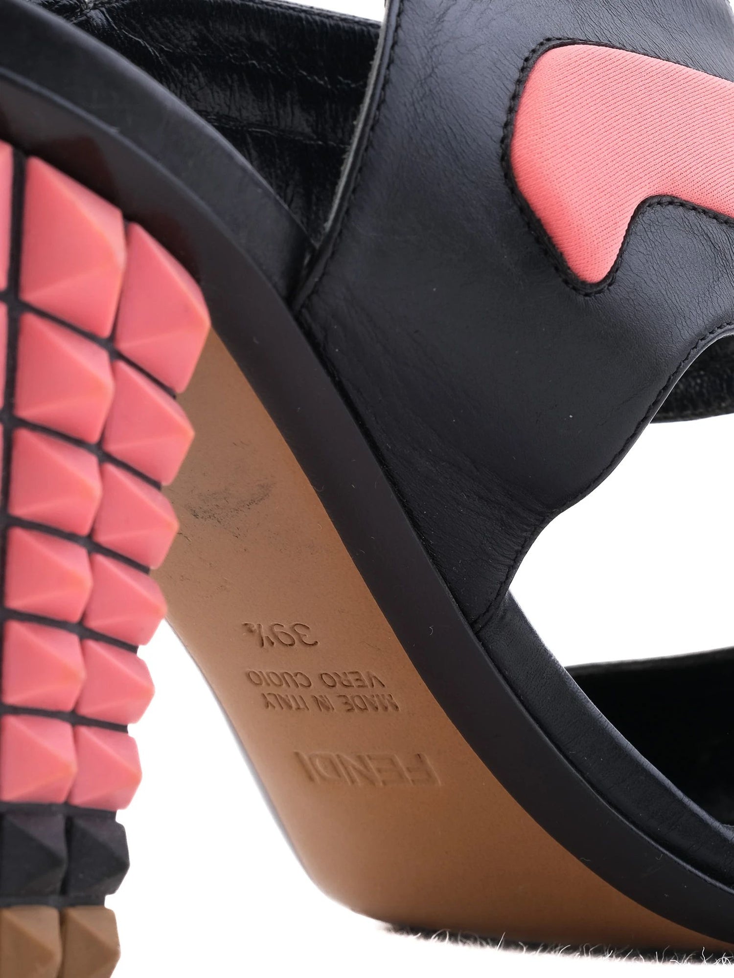 Excellent Fendi High-Heeled Sandals Black Leather Size 39.5. These stylish high-heeled sandals by Fendi are a must-have addition to your wardrobe. Crafted from high-quality black leather, they feature unique pink accents and stud-like embellishments on the block heels in coordinated pink, black, and brown colors. The open-toe design paired with a buckle strap around the ankle offers both elegance and comfort, making them suitable for various occasions. The sandals are in excellent condition, showcasing minimal signs of wear, and fit true to size at 39.5. Care instructions recommend using a leather cleaner to maintain their stunning appearance. With striking design elements and robust materials, these Fendi sandals are perfect for semi-casual outings or evening events. This pair is from a smoke-free home, ensuring they are in pristine condition for your collection. Please message me to confirm shipping timeframe. My full-time job involves traveling often, and shipping out may take longer than usual. Thanks for your interest.