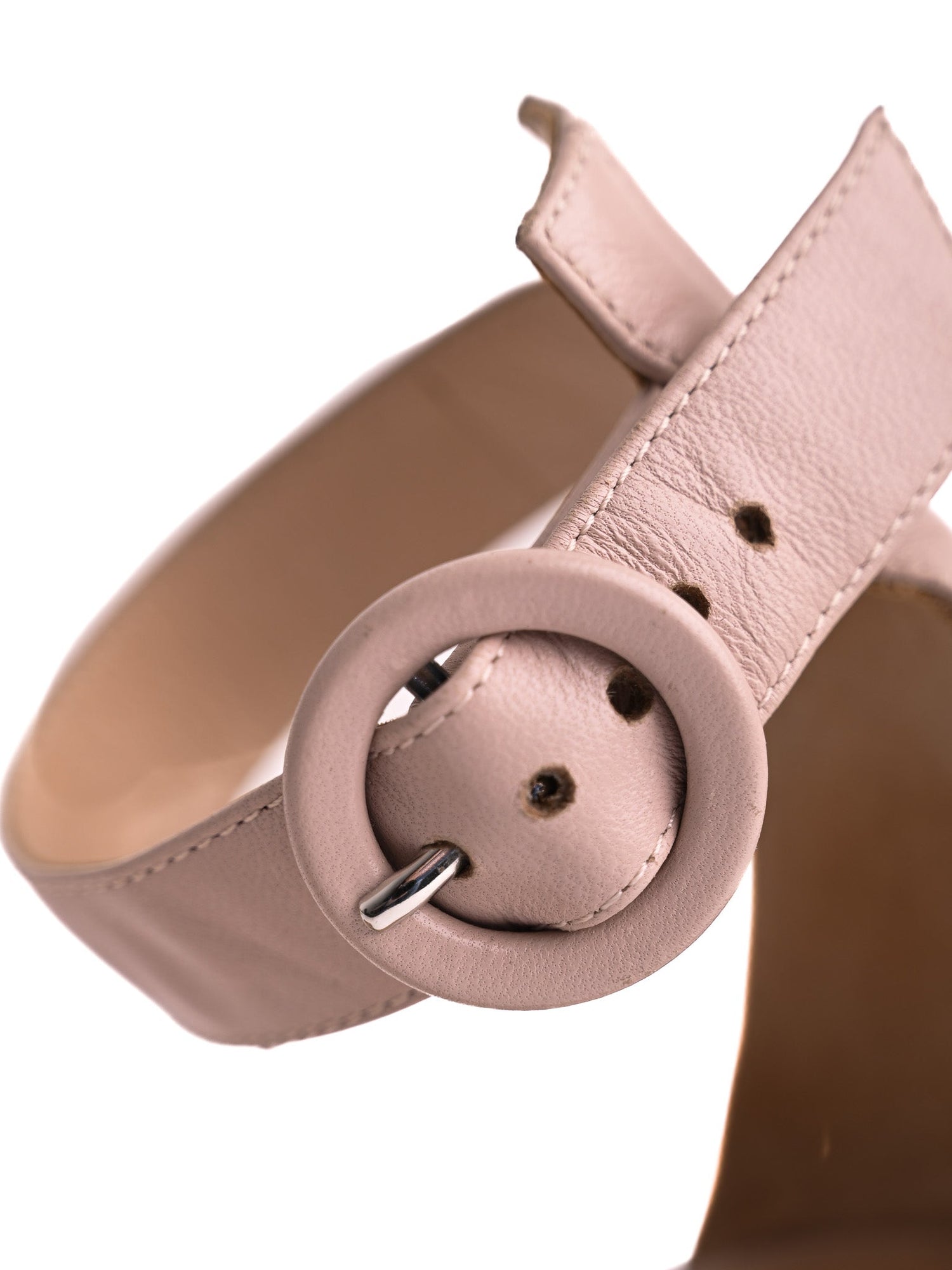 These stunning high-heeled shoes from renowned brand Gianvito Rossi are crafted from premium leather, showcasing an elegant pink color that adds a touch of sophistication to any outfit. The shoes feature a pointed toe design and a secure ankle strap with a round buckle detail, enhancing both style and support.