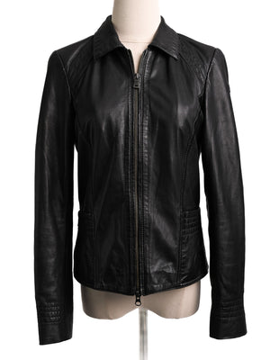 Excellent Henry Lloyd Black Leather Jacket Size XXS Women.