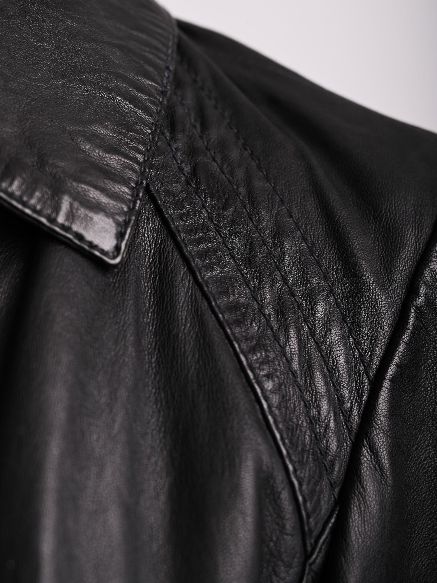 Featuring a zip-up front, this classic-style jacket has a collared neckline that adds a timeless touch. The material is genuine leather, known for its durability and sleek appearance.