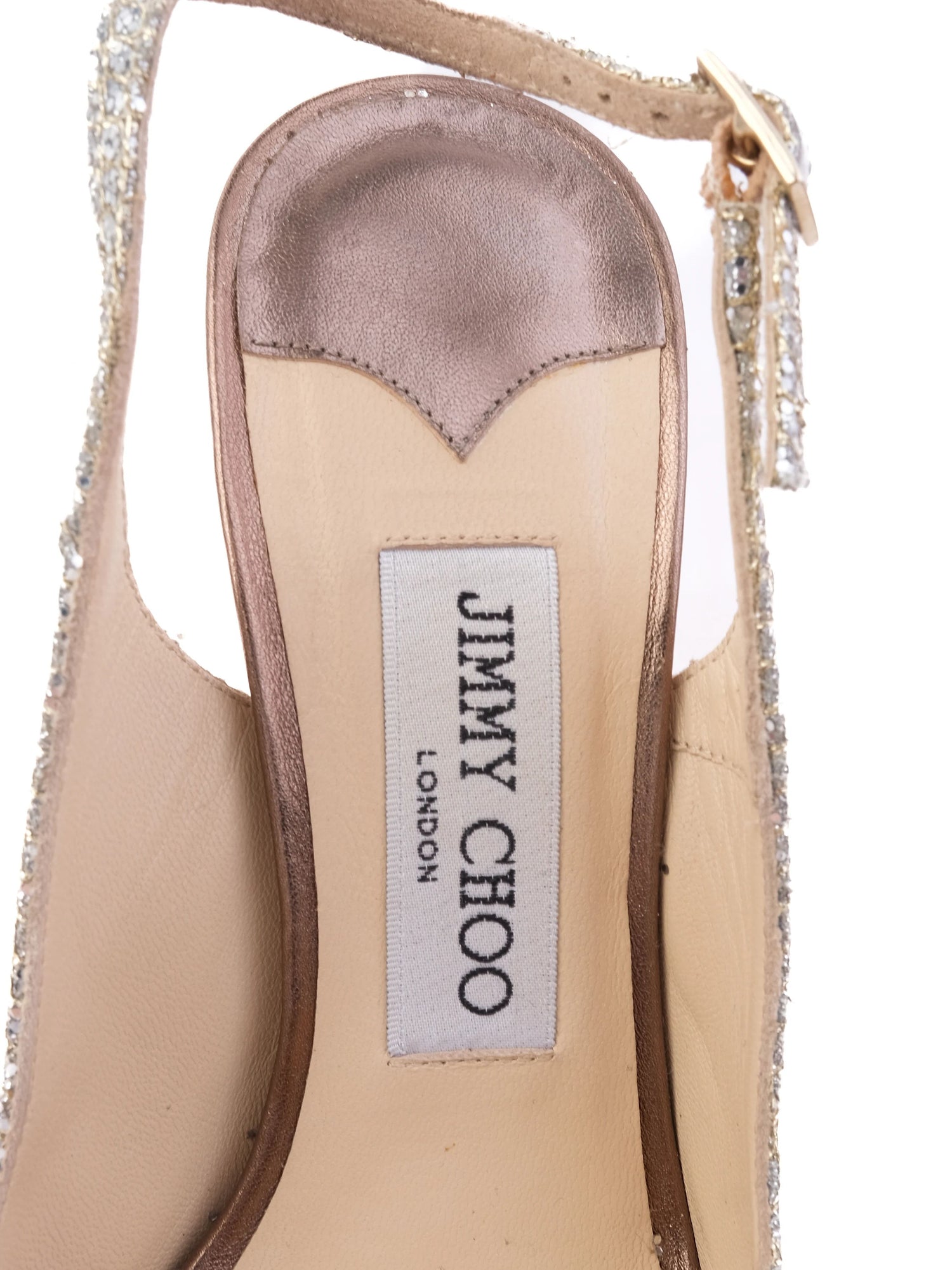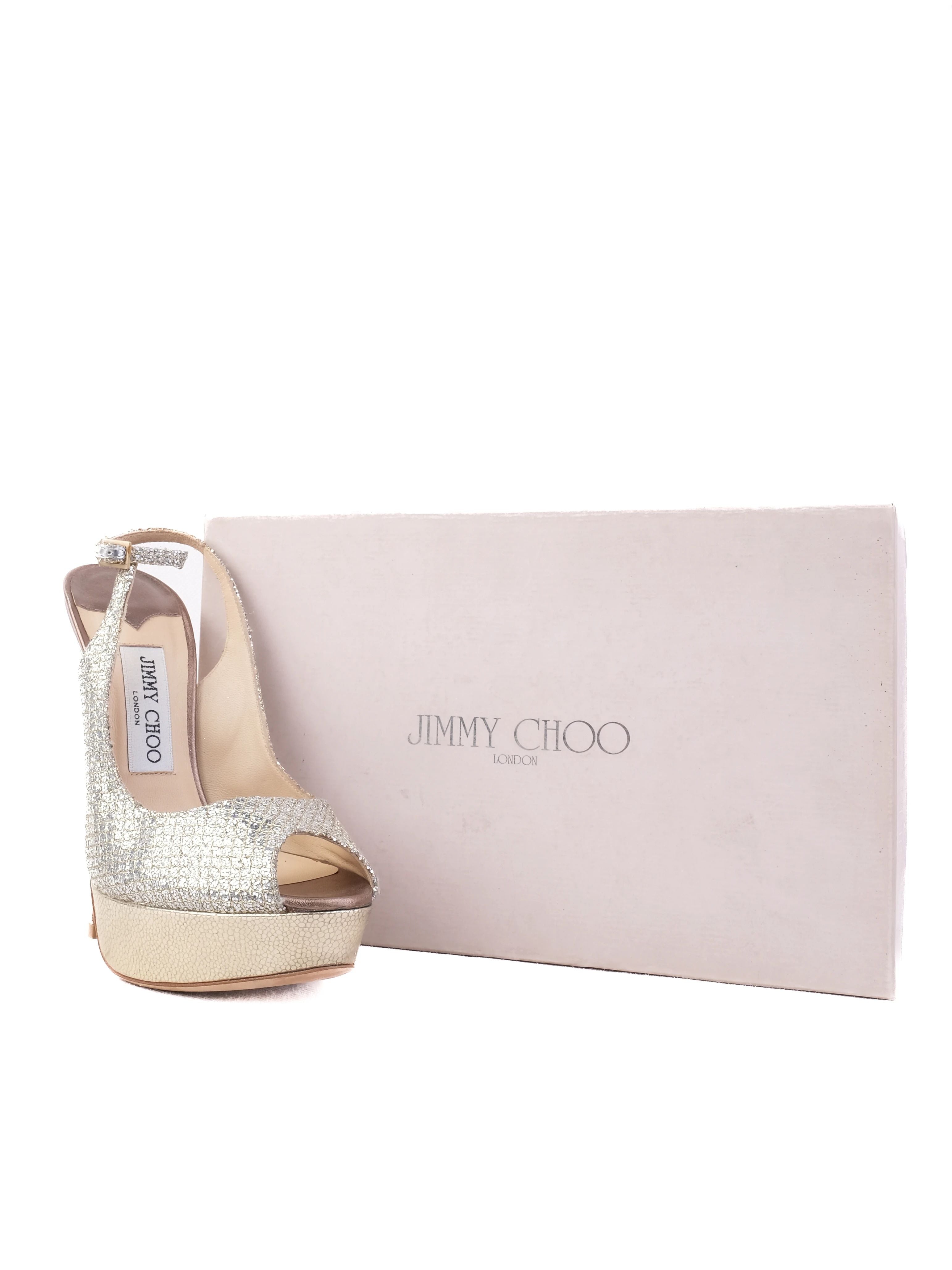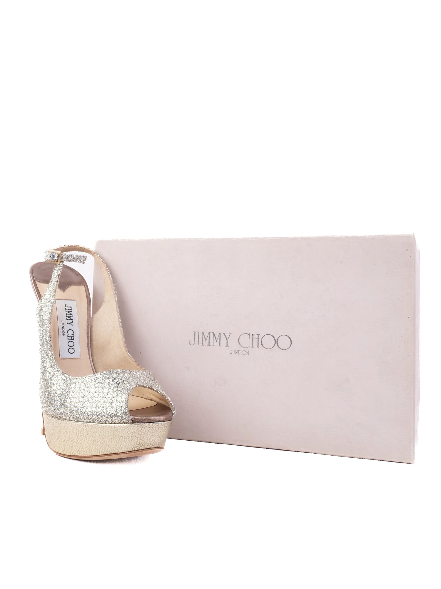 Excellent Jimmy Choo Gray Leather High-Heeled Platform Shoes Size 37 These elegant high-heeled, open-toe platform shoes by Jimmy Choo are a stunning addition to any formal or special occasion outfit. Crafted from premium gray leather, these shoes exude sophistication and style. The design features a striking sparkling embellishment, adding a touch of glamour that is sure to turn heads. The ankle strap ensures a secure fit, while the stiletto heel elevates your stature, making these shoes perfect for evening events or upscale gatherings. They are in excellent condition with no visible flaws, making them ready to be worn on your next outing. Size 37, these shoes fit true to size and are designed for women who appreciate quality and style. The visible label on the inner sole confirms their authenticity as a genuine Jimmy Choo creation. Care instructions: It is recommended to clean them with a leather cleaner to maintain the integrity and appearance of the leather. These heels are not just a footwear choice but a statement piece that complements various outfits and enhances your overall look. Make them yours today and step into elegance! Please message me to confirm shipping timeframe. My full-time job involves traveling often, and shipping out may take longer than usual. Thanks for your interest.