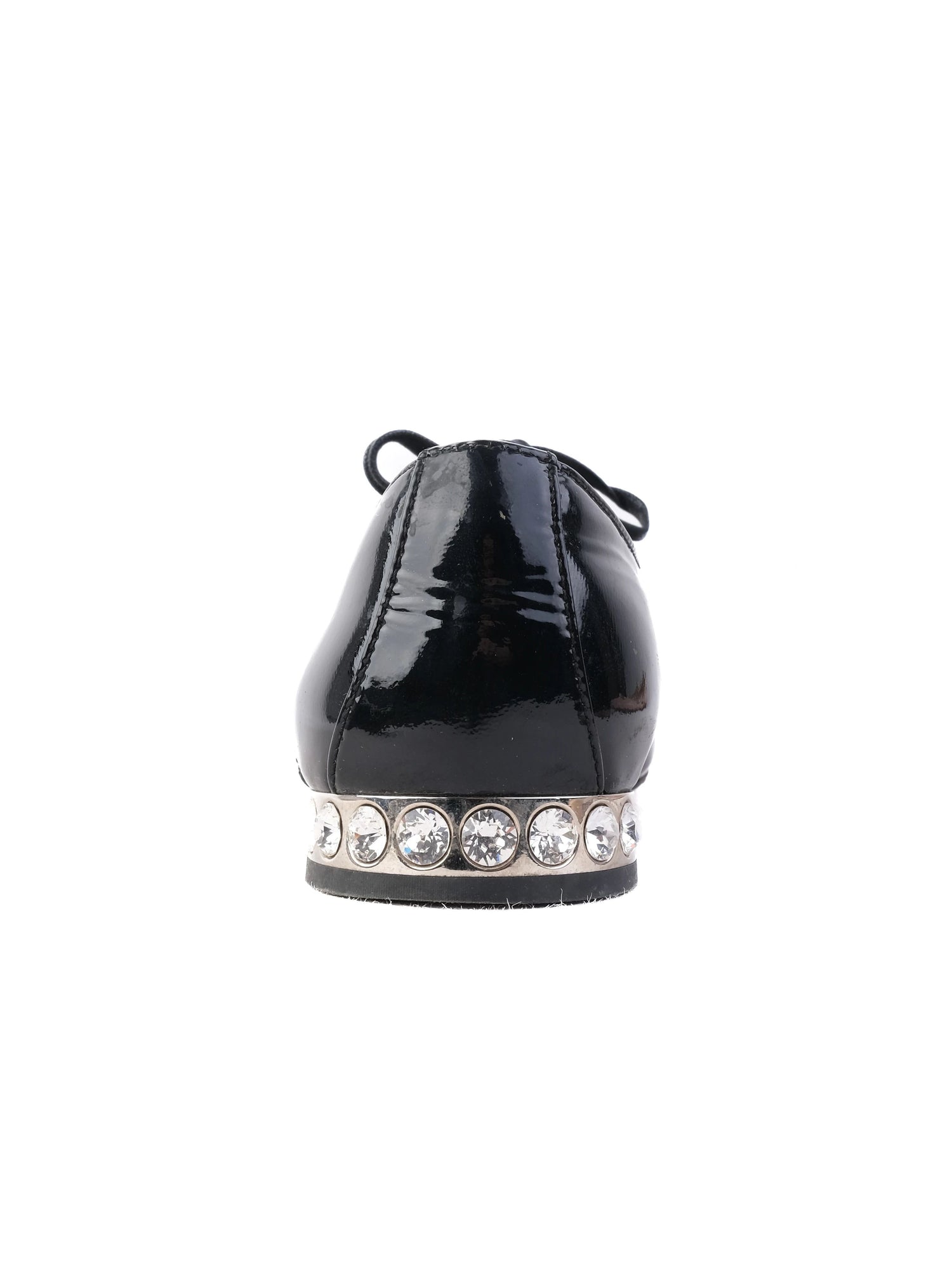 Excellent Miu Miu Black Leather Dress Shoes Size 36.5 with Rhinestones