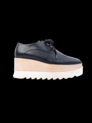 Excellent Stella McCartney Black Leather Platform Shoes Size 36.5.