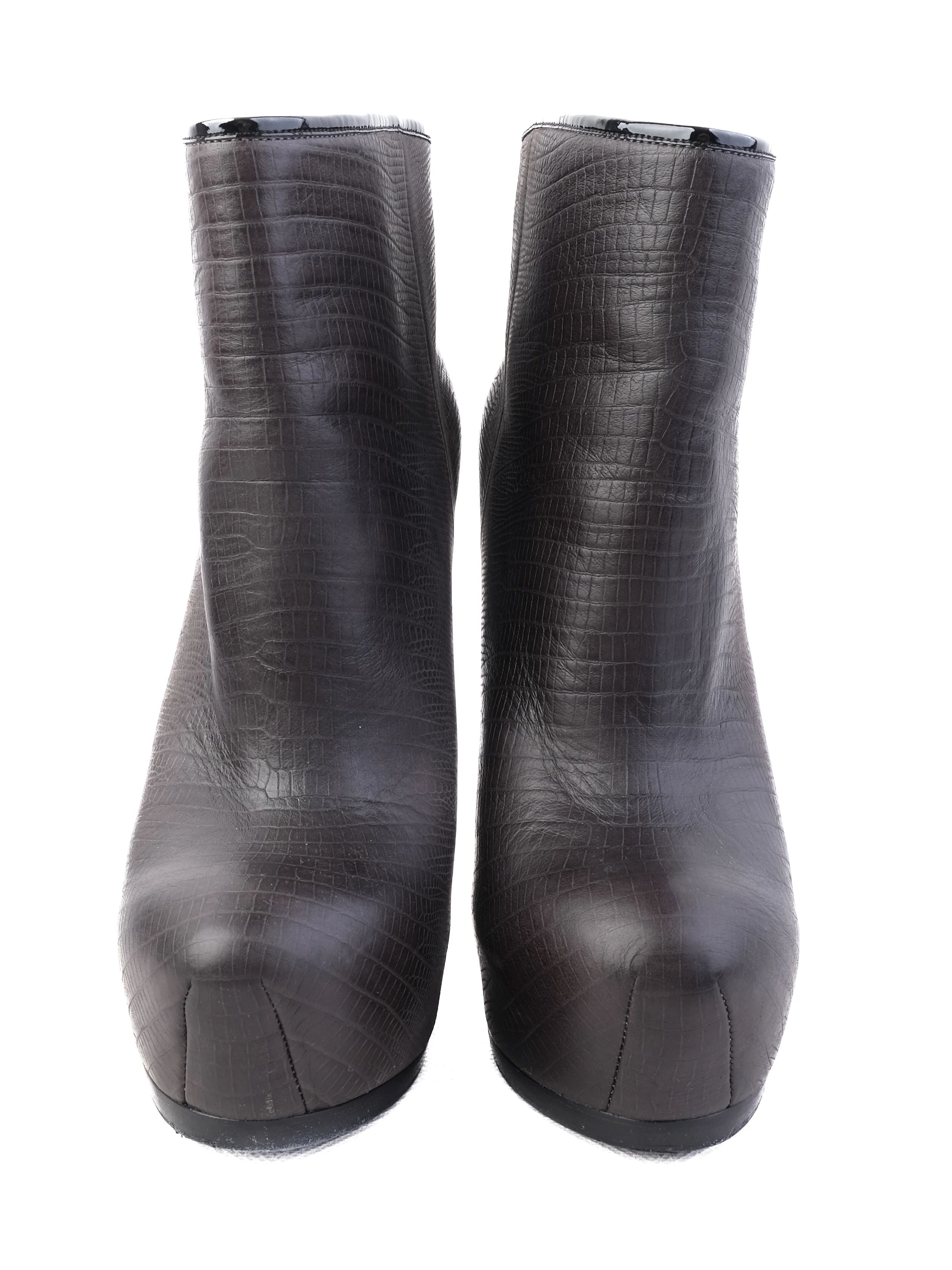 Excellent Yves Saint Laurent Gray Leather High-Heeled Ankle Boots Size 38