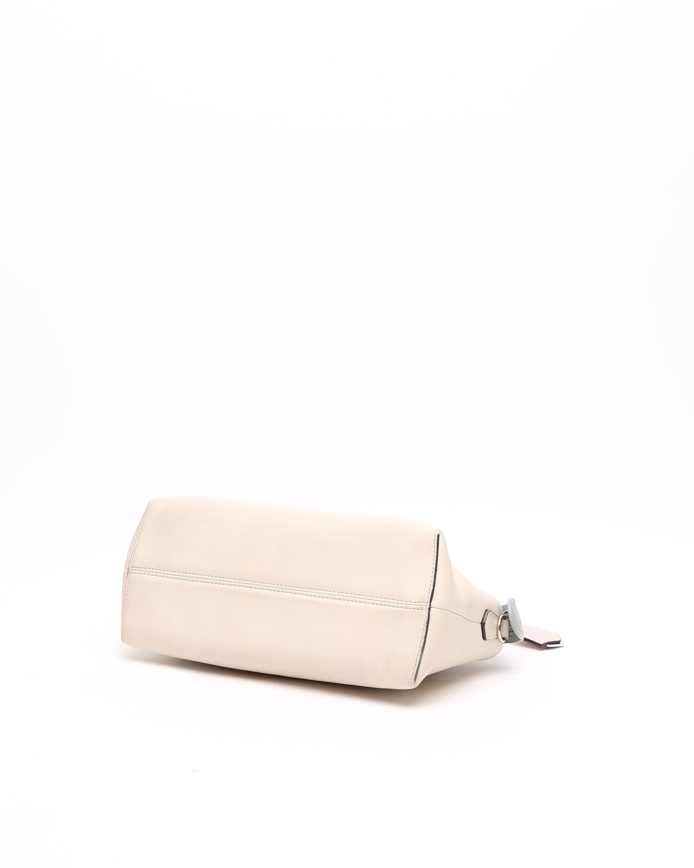 Fendi By The Way Bag- Silver-tone hardware- White leather- Dual handles and detachable shoulder strap- Grey lining with two compartments and three pockets- VintageOverall Preloved Condition: Very Good.Exterior Condition: Very Good. Light discoloration throughout leather. Worn along edges.Interior Condition: Very Good. Slightly discolored lining.Hardware: Shiny with scratches.Delivered with detachable shoulder strap, clochetteMade in ItalyDimensions:Height 18 cmWidth 27 cmDepth 12 cmHandle drop 5 cmShoulder strap drop 45 cmPlease note that the majority of our items are vintage and therefore have tales to tell unless stated otherwise. Therefore, please look at pictures, descriptions and measurements provided as they give you the best idea of the story this item has to tell.* Please note that when you buy a vintage product, the dimensions may vary slightly from a new one depending on previous care and storage.