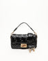 Fendi Large Patent FF Embossed Baguette Bag- Gold-tone hardware- Black embossed patent leather- Detachable handle and detachable shoulder strap- Brown lining with one pocket- VintageOverall Preloved Condition: Very Good.Exterior Condition: Very Good. Light wear and discoloration to patent coating.Interior Condition: Very Good. Light trace of use.Hardware: Shiny with scratches.Delivered with detachable shoulder strap, dust bagMade in ItalyDimensions:Height 15 cmWidth 26 cmDepth 5 cmHandle drop 11 cmShoulder strap drop 42 cmPlease note that the majority of our items are vintage and therefore have tales to tell unless stated otherwise. Therefore, please look at pictures, descriptions and measurements provided as they give you the best idea of the story this item has to tell.* Please note that when you buy a vintage product, the dimensions may vary slightly from a new one depending on previous care and storage.