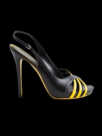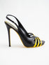 These stylish sandals feature a chic slingback design perfect for elevating any outfit. Crafted from high-quality leather, they showcase eye-catching black and yellow detailing with elegant straps across the toes.