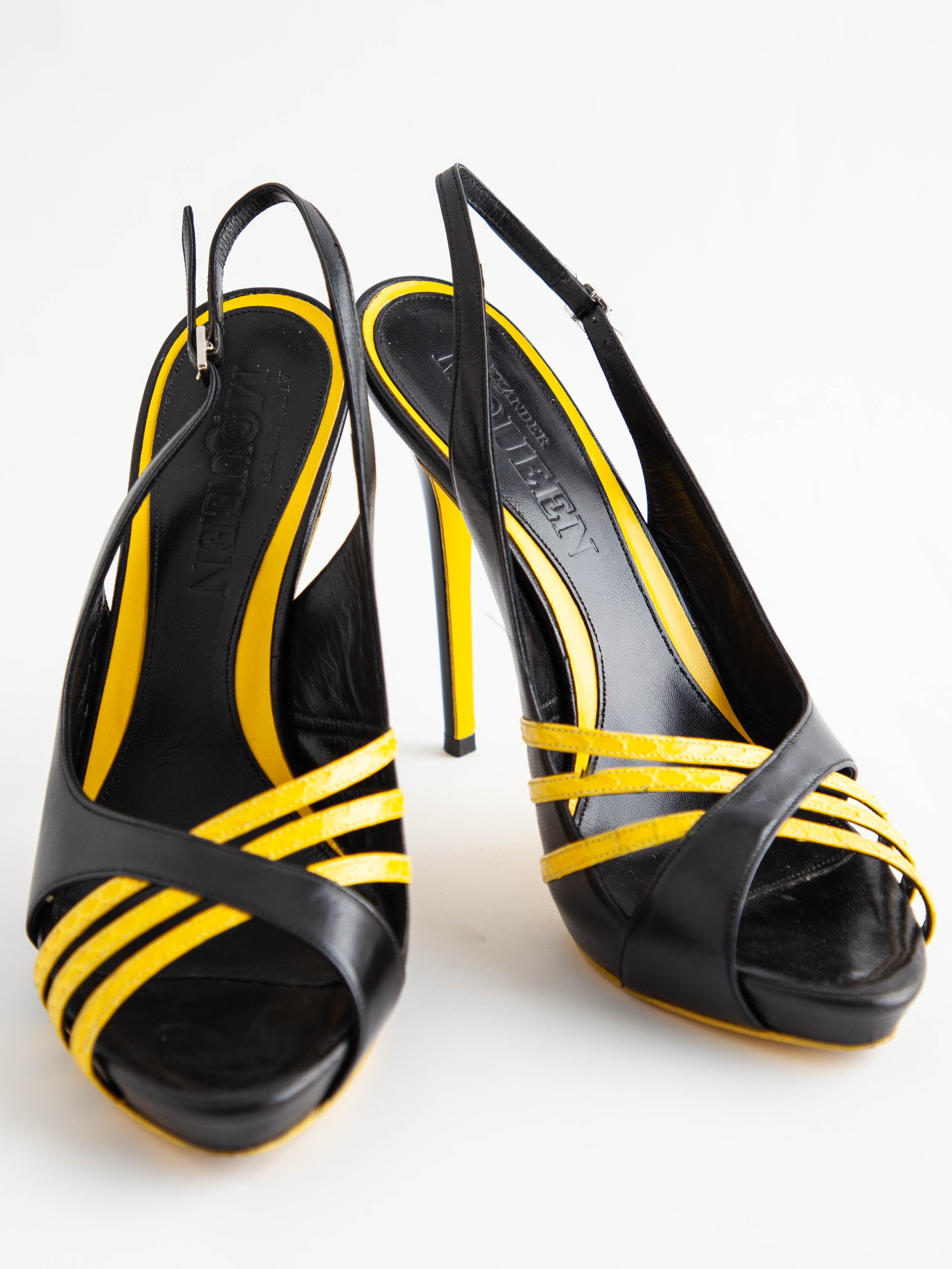 Good Alexander McQueen Combined Leather Slingback High-Heeled Sandals Size 39