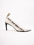 Good Baldan White High-Heeled Leather Shoes Size 36.5 with Unique Strap.