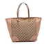 The Bree tote bag features a canvas and leather body, flat leather handles, a top zip closure, and interior zip and slip pockets.