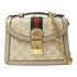 Gucci GG Supreme Monogram Textured Dollar Calfskin Web Mini Ophidia Padlock Top Handle Chain Shoulder Bag