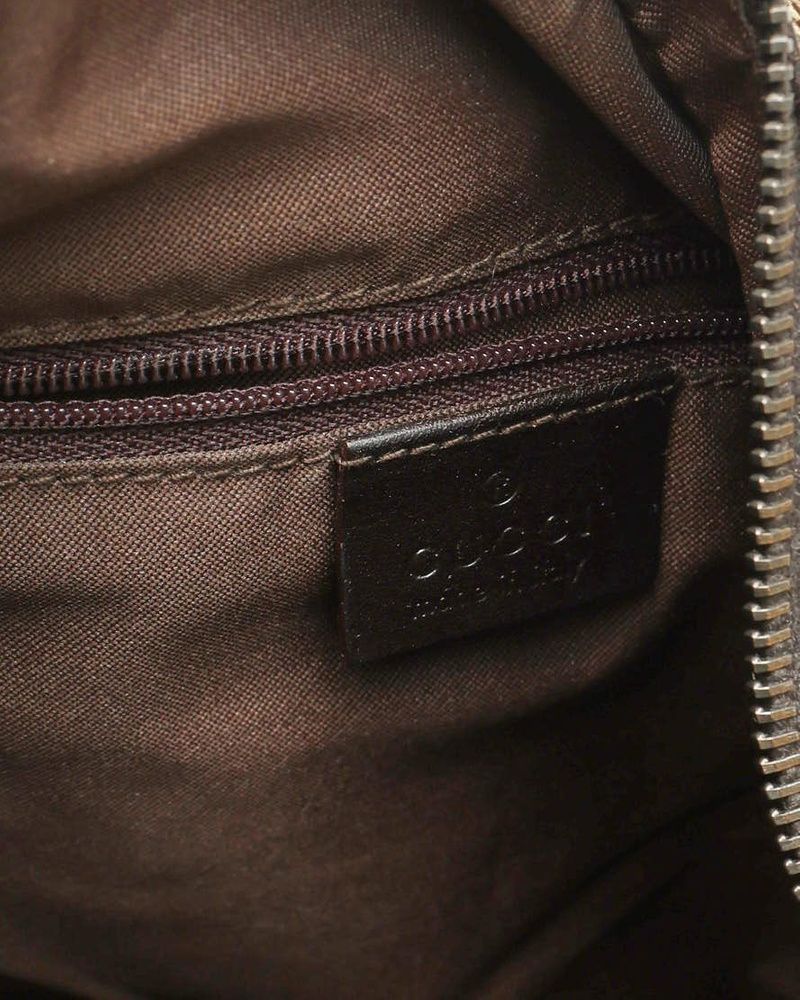Gucci GG Web Attache Shoulder Bag- Silver-tone hardware- Beige GG canvas- Flat shoulder strap- Brown lining with one pocket- VintageOverall Preloved Condition: Very Good.Exterior Condition: Very Good. Scratches at leather trim.Interior Condition: Good. Deteriorated bottom plate. Crunchy feel.Hardware: Shiny with scratches.Delivered with booklet and dust bagMade in ItalyDimensions:Height 25 cmWidth 36 cmDepth 6 cmShoulder strap drop 45 cmPlease note that the majority of our items are vintage and therefore have tales to tell unless stated otherwise. Therefore, please look at pictures, descriptions and measurements provided as they give you the best idea of the story this item has to tell.* Please note that when you buy a vintage product, the dimensions may vary slightly from a new one depending on previous care and storage.