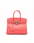 Hermes Epsom Birkin 30 Bag- Gold-plated hardware- Pink Epsom leather- Dual handles- Brown lining with two pockets- VintageOverall Preloved Condition: Very Good.Exterior Condition: Very Good. Light trace of use.Interior Condition: Very Good. Light trace of use.Hardware: Shiny with scratches.Delivered with clochette with keys and padlock.Made in FranceSerial number: Square P (2012)Dimensions:Height 22 cmWidth 30 cmDepth 16 cmHandle drop 15 cmPlease note that the majority of our items are vintage and therefore have tales to tell unless stated otherwise. Therefore, please look at pictures, descriptions and measurements provided as they give you the best idea of the story this item has to tell.* Please note that when you buy a vintage product, the dimensions may vary slightly from a new one depending on previous care and storage.